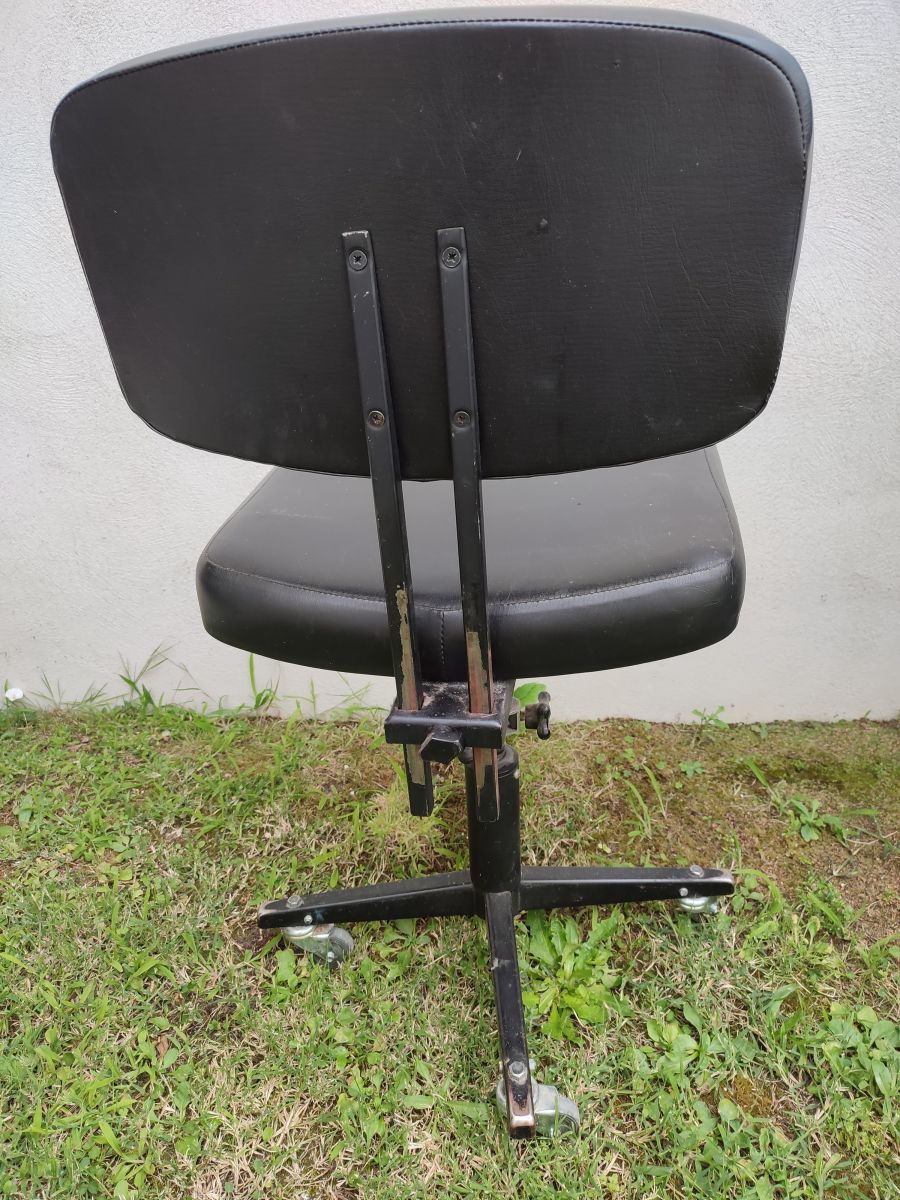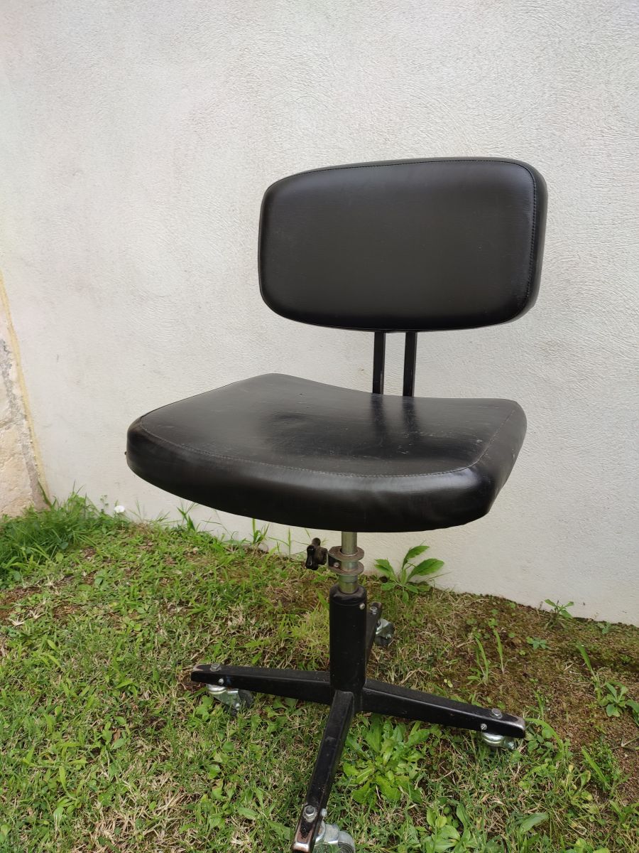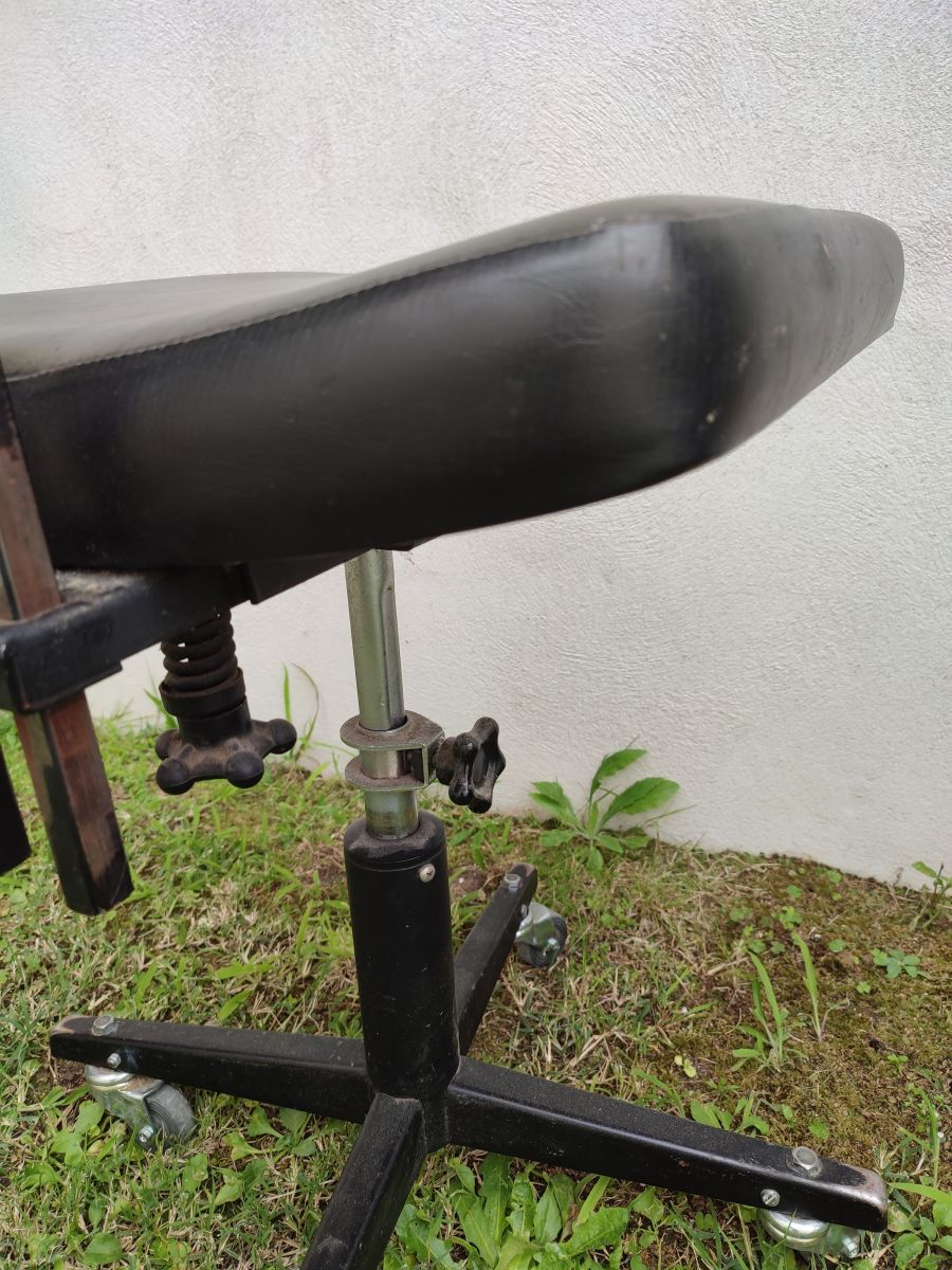 Fauteuil d'atelier vintage à roulettes, réglable en hauteur.