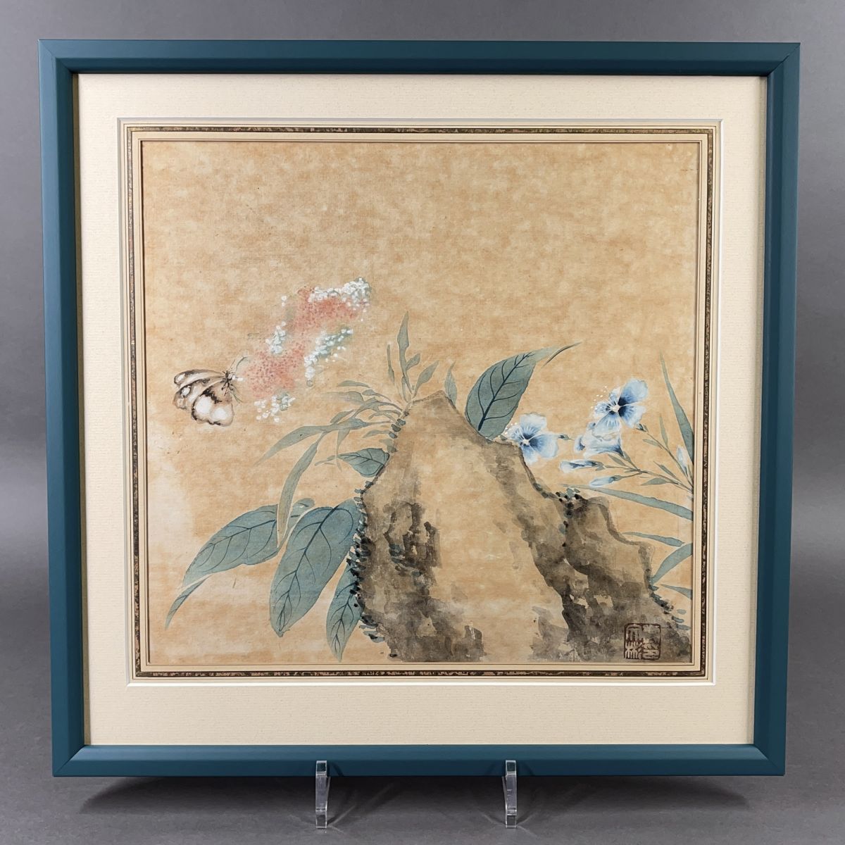 L’œuvre ancienne chinoise vient d’être encadrée avec un verre anti reflet, un passe partout laissant apparaître le liseret de l’ancien et un jolie baguette en bois couleur “bleu canard” très tendance et se mariant très bien avec les six estampes anciennes chinoises que je vous propose.