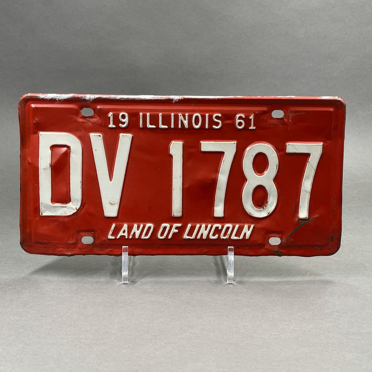 Belle plaque d’immatriculation américaine de l’état d’Illinois datant de 1961.