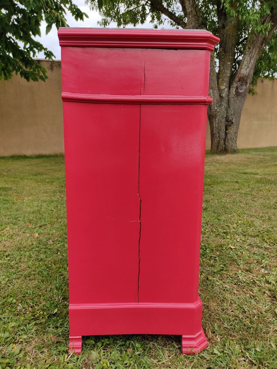 Bois massif avec plateau en marbre gris, 1 tiroir et 1 porte.