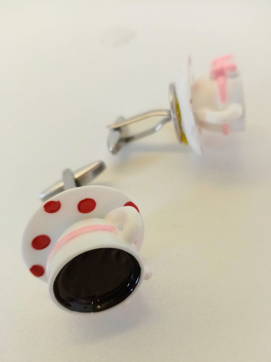 Cette paire ci illustre la tasse de café ou de chocolat chaud du matin ou de la pause. Elle existe en rouge et en blanc, à vous de choisir et de l'assortir à votre chemise pour arborer une allure personnelle et fantaisiste.