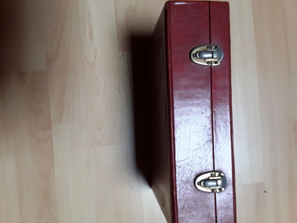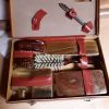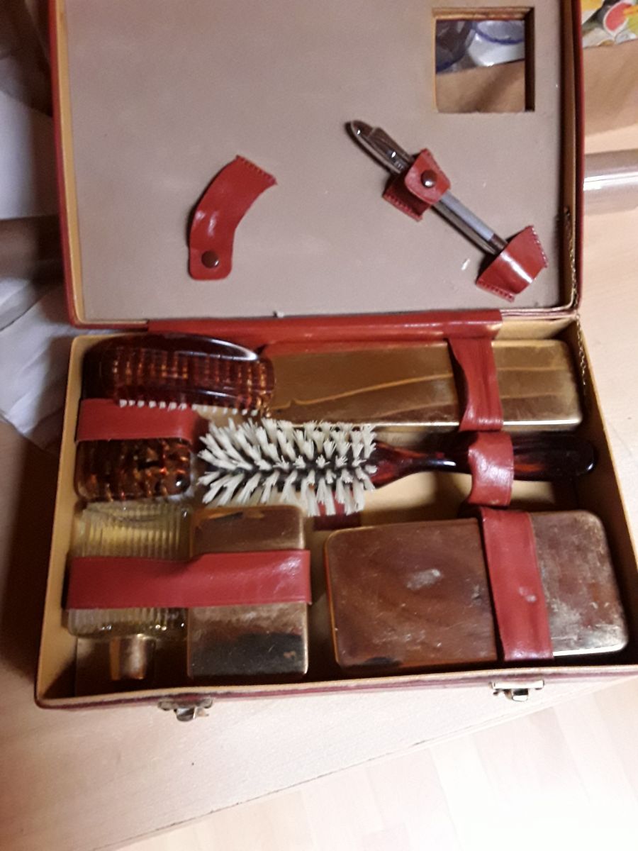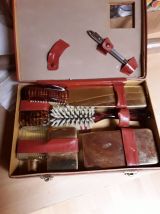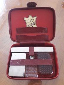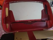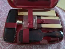 Vends trousse de toilette vintage étui en cuir rouge manque juste le réveil avec accessoires et 1 stylo
