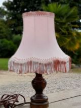 Lampe chevet/à poser pied bois abat jour tissu rose