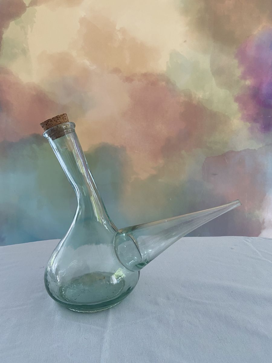 Porron, pichet à vin catalan lisse avec bec effilé pour boire à la régalade et bouchon de liège