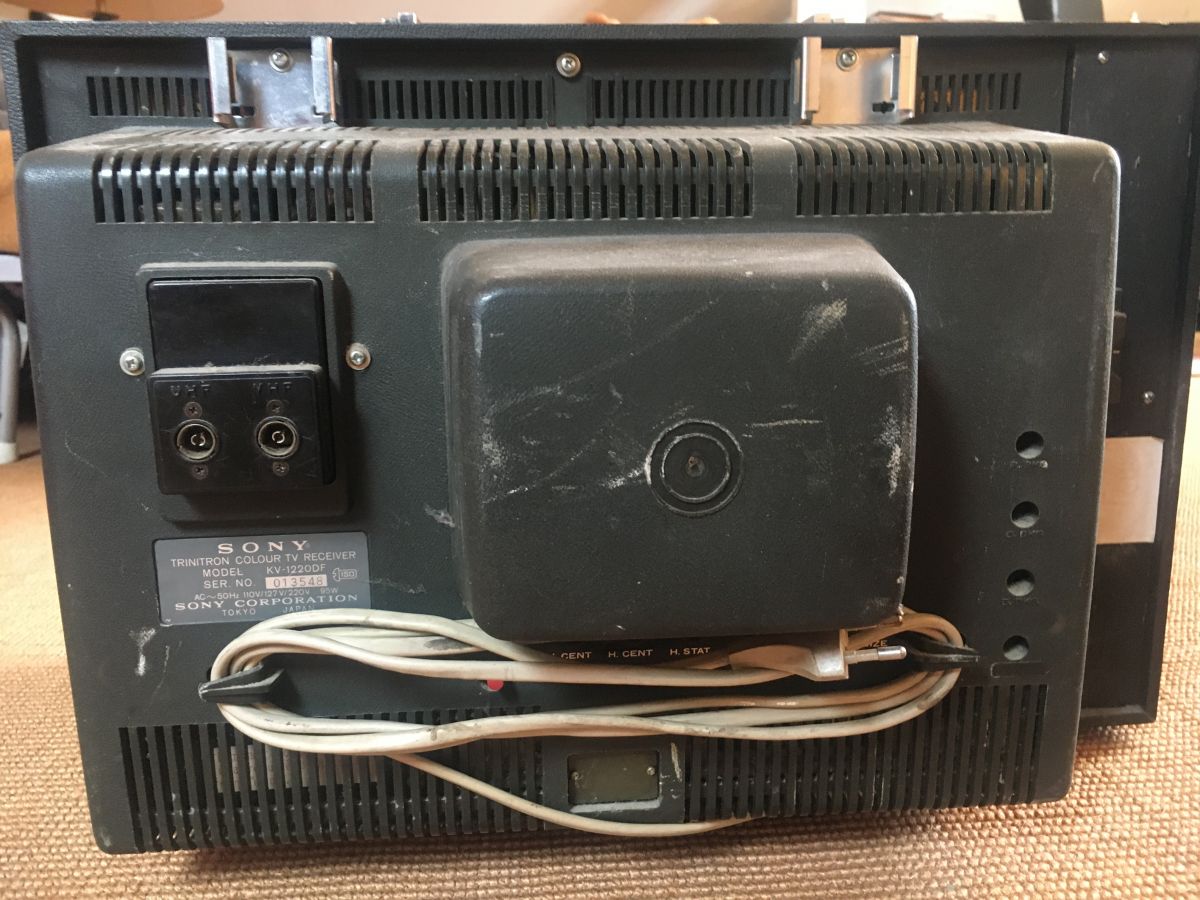 1er téléviseur couleur SECAM à tube cathodique portable Trinitron® de Sony® vendu en France, le KV-1220DF version portable de 1972, 30 cm de diagonale,