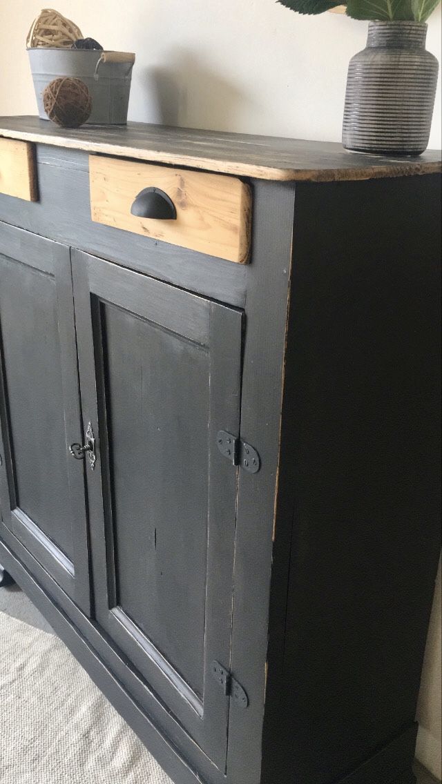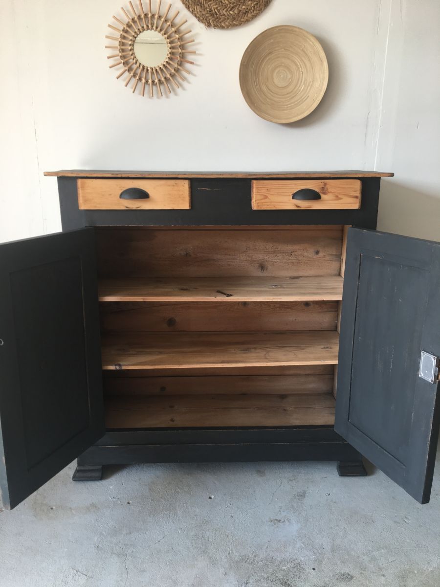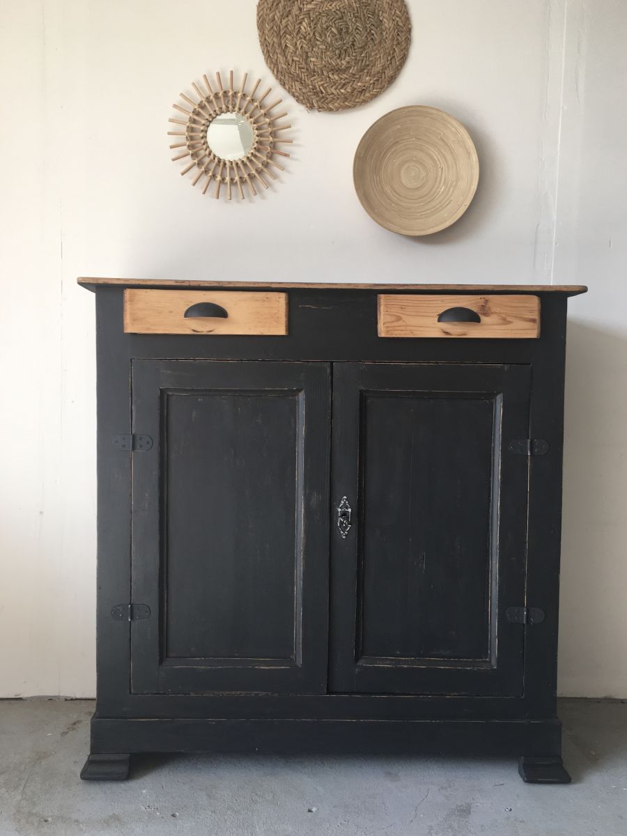 Beau buffet parisien, avec une superbe patine noir mat, protégée d’un vernis mat.