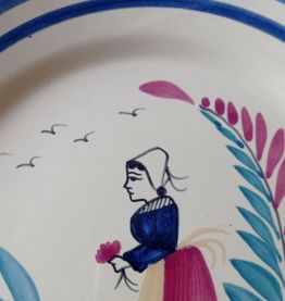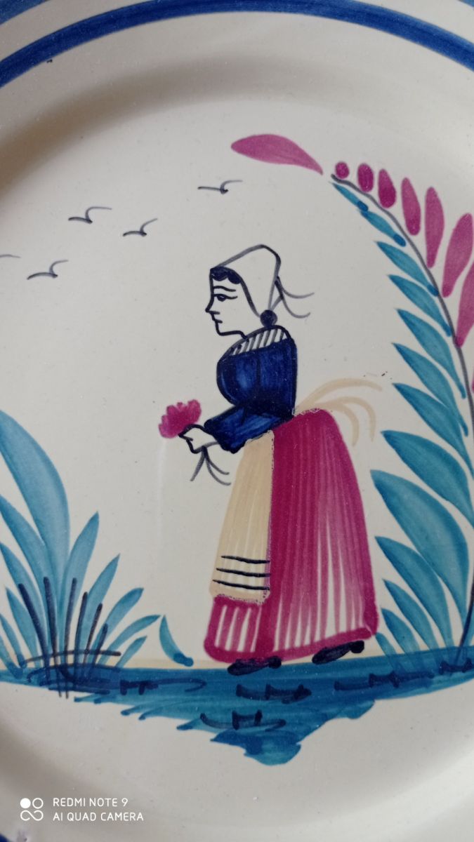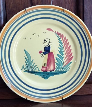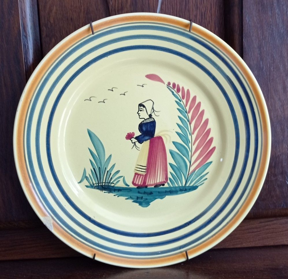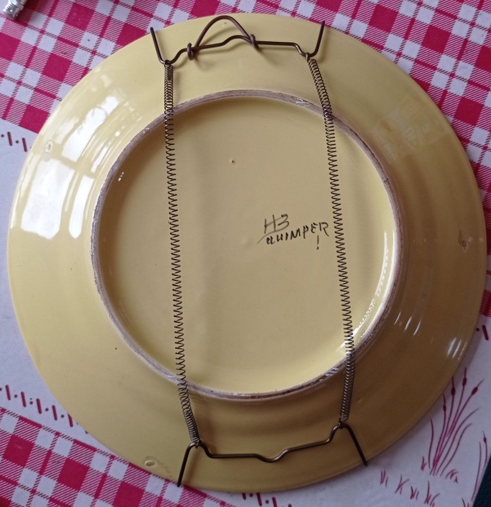 Assiette murale diamètre 24 cm avec attache, signature au verso.