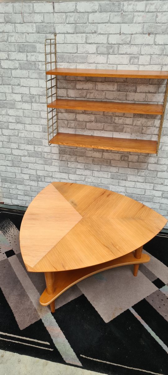 table scandinave pieds fuseau tres bonne stabilité; trace d usure legere sur plateau 84x44