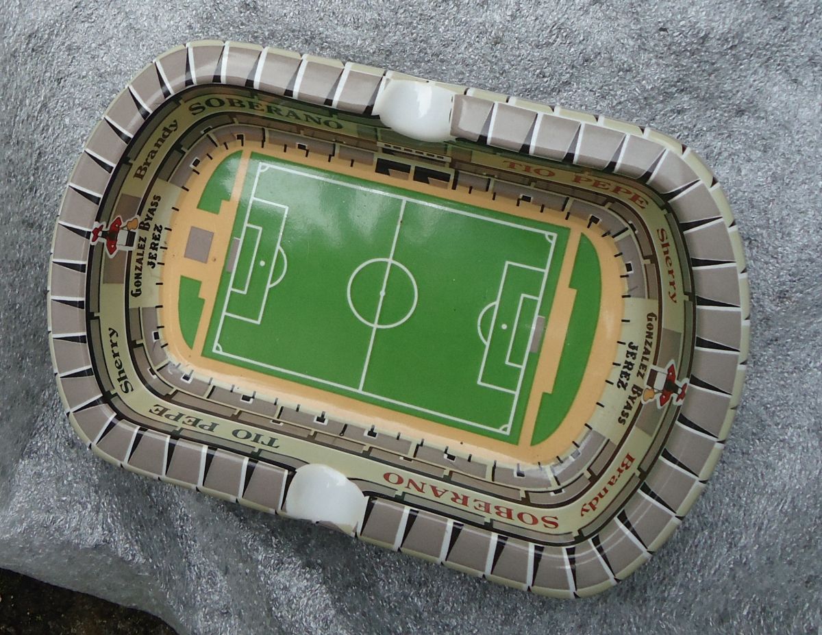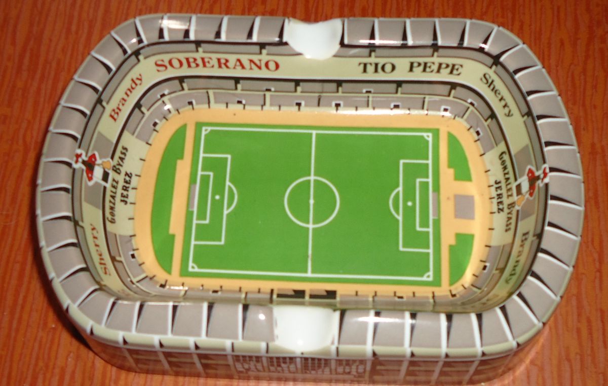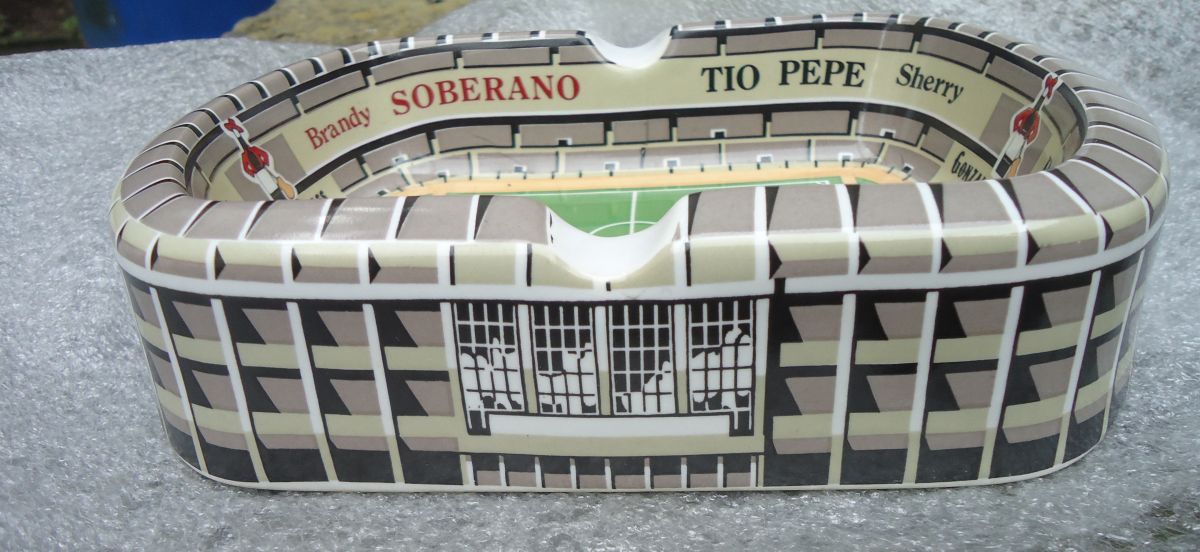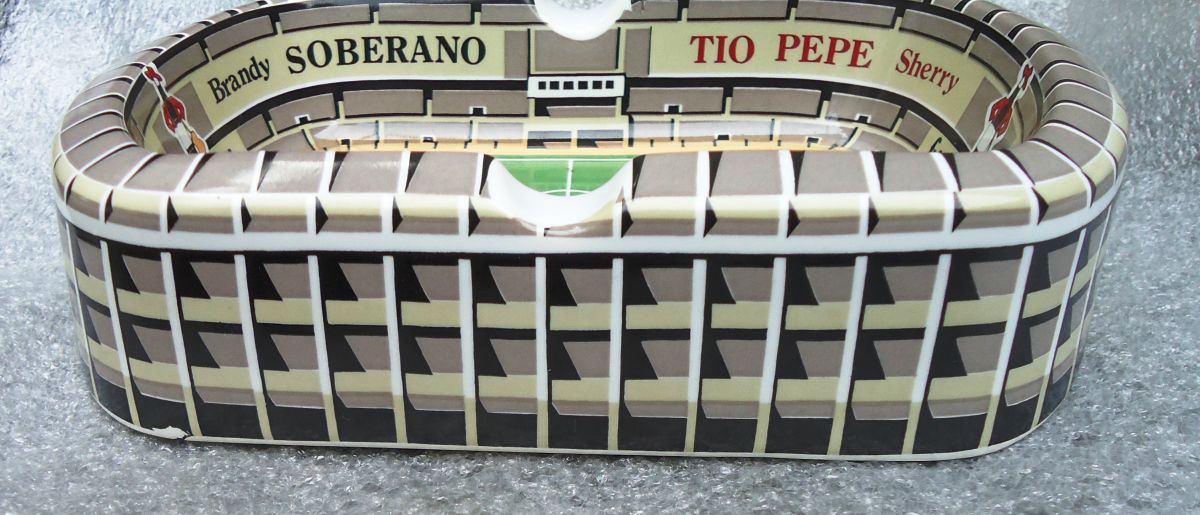 PORCELAINE ANTIQUE CENDRIER - STADE SANTIAGO BERNABEU - REAL MADRID - REAL MADRID - PUBLICITE GONZáLEZ BYASS - SOUVERAIN - TIO PEPE - VERSO PORCELAINE MOAHSA, ESPAGNE - CENDRIER EXCLUSIVE GONZáLEZ BYASS & CO. LTD - DIMENSIONS 18,5 X 12 , 5 X 4 CM.