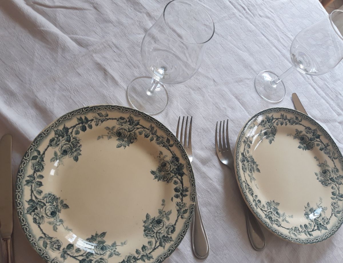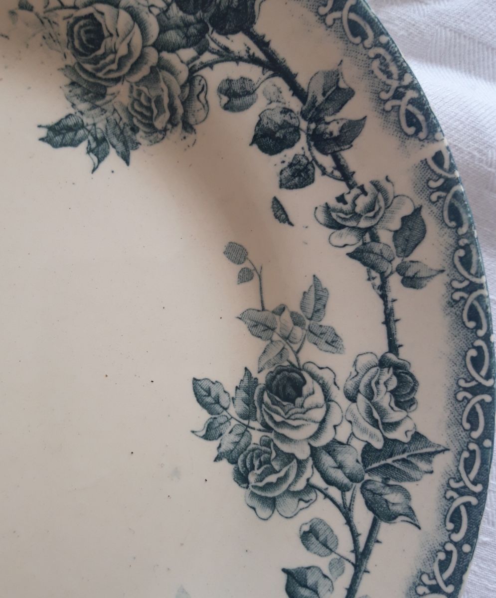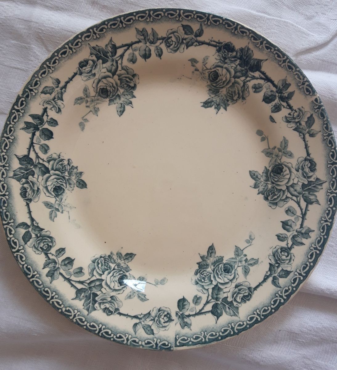 2 magnifiques assiettes plates terre de fer de la faiencerie Boulenger. Garnies de roses. 23 Cm de diamètre.