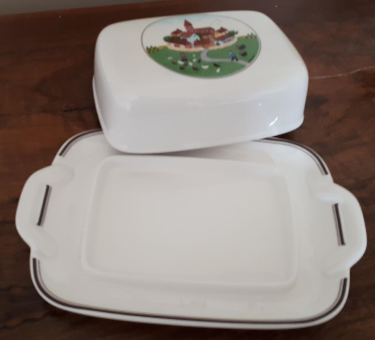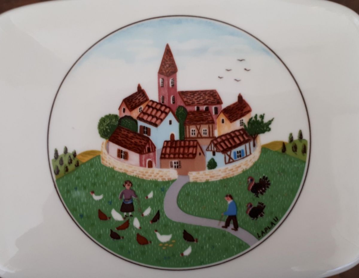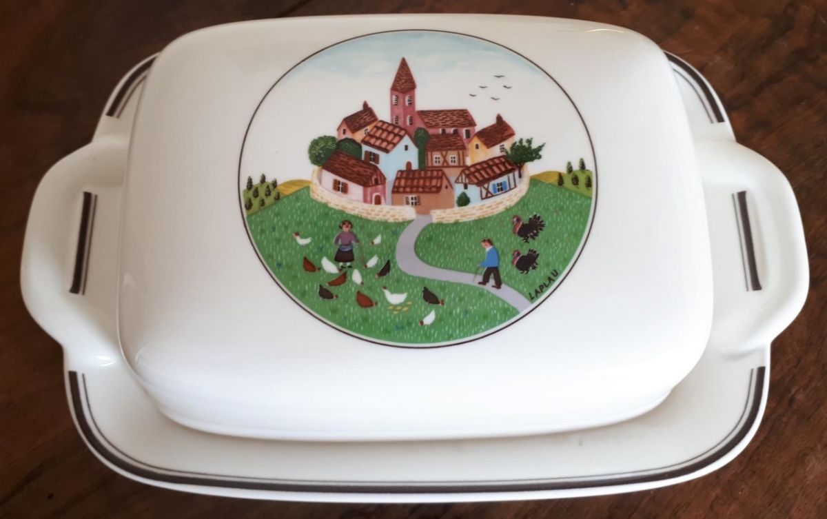 Beurrier en porcelaine blanche impression sur le dessus du motif Design Naïf de Laplau.