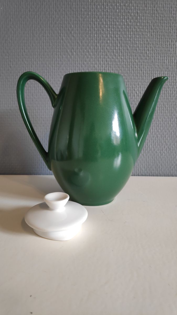 verseuse Villeroy et Boch en céramique verte et blanche des années 50-60