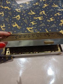 Bon état général, le sabot en plastique noir n'est ni cassé ni fendu; les cartes sont correctes et pas tâchées; seule la boîte a perdu en partie sa pellicule de protection d'où des traces grises et des petites marques d'usure.
