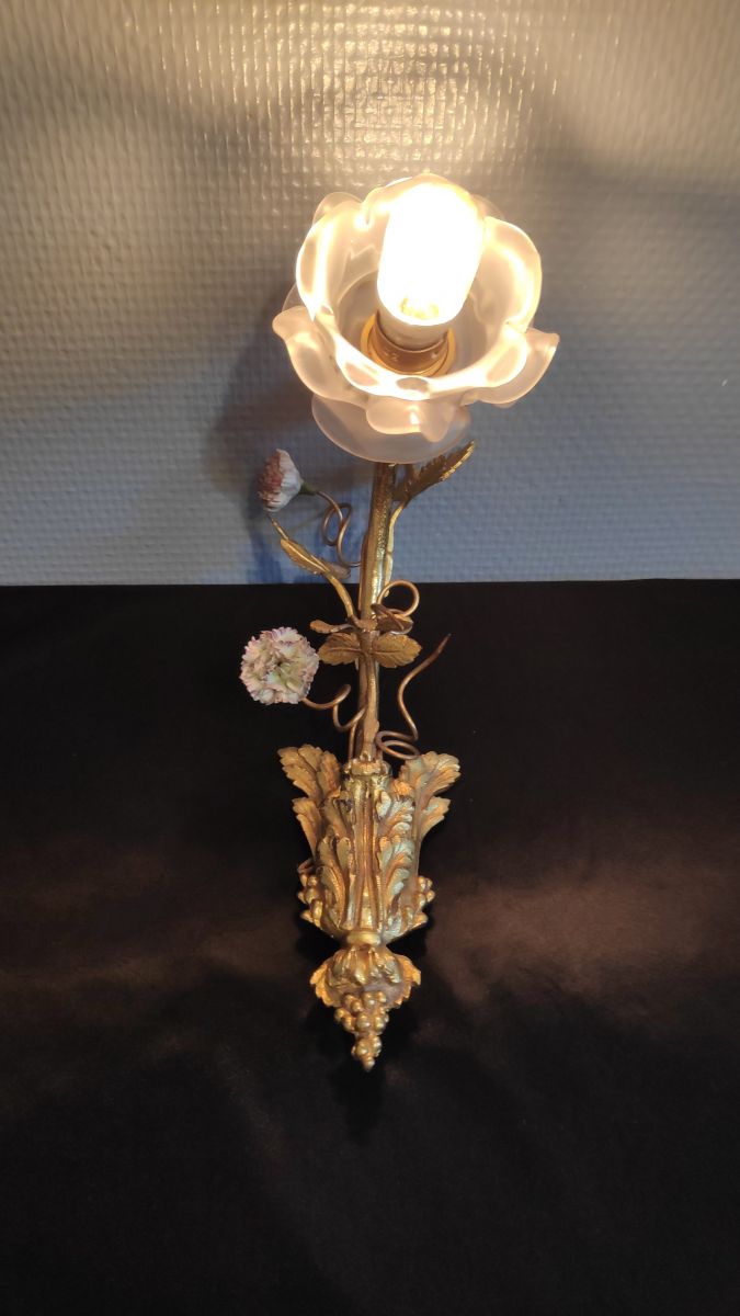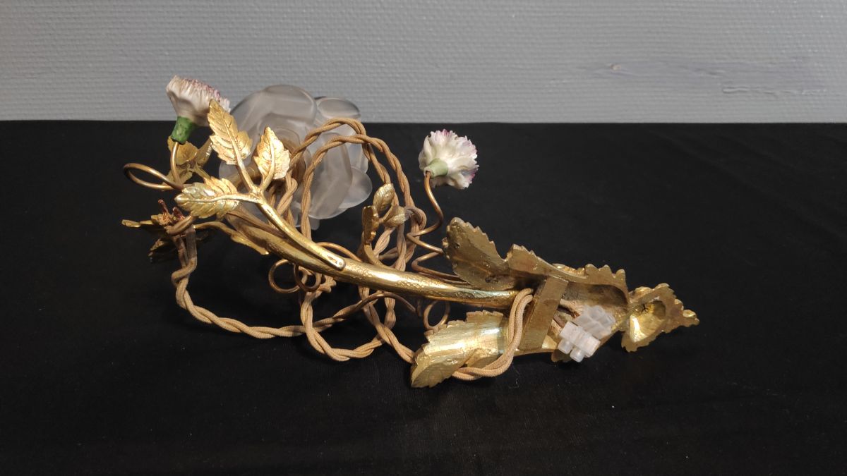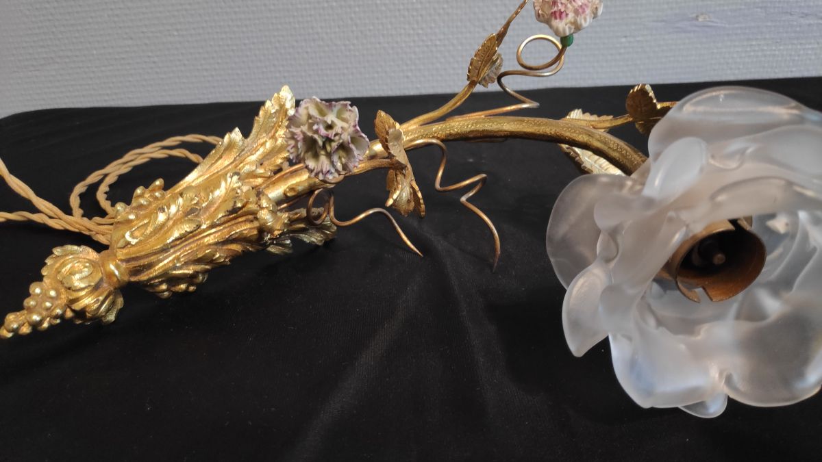 applique fleurs en bronze art déco et tulipe en pâte de verre