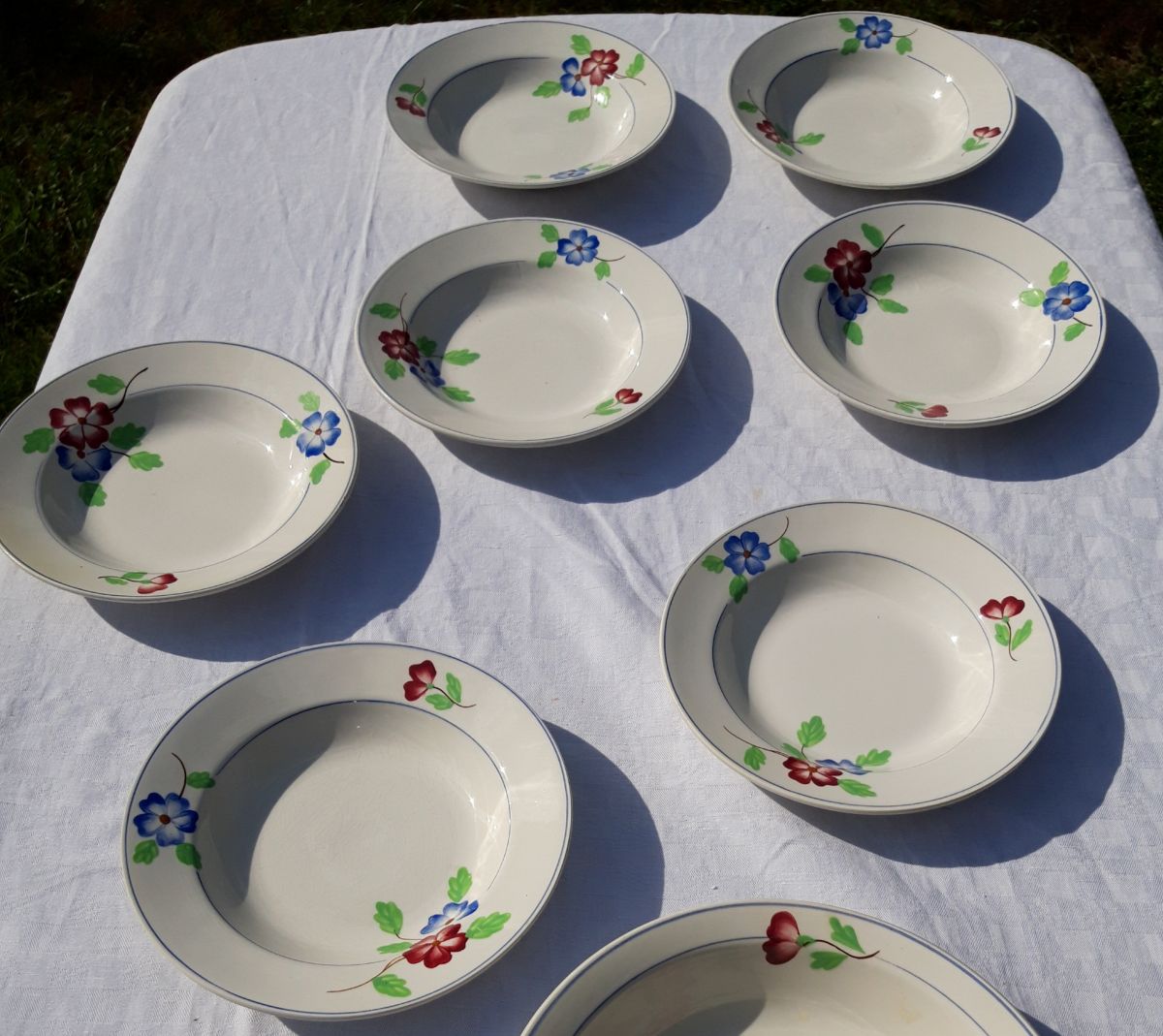 7 assiettes creuses Moulin des Loups. 23 cm de diamètre. Modèle Véronique. Bon état.
