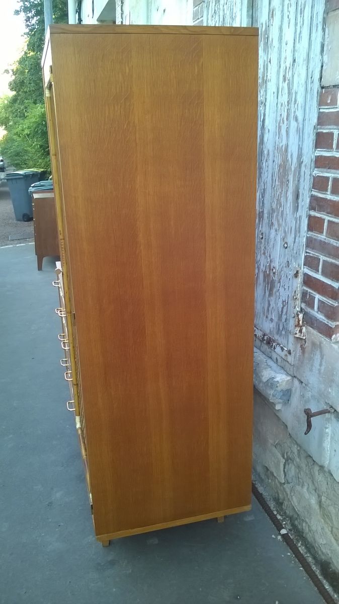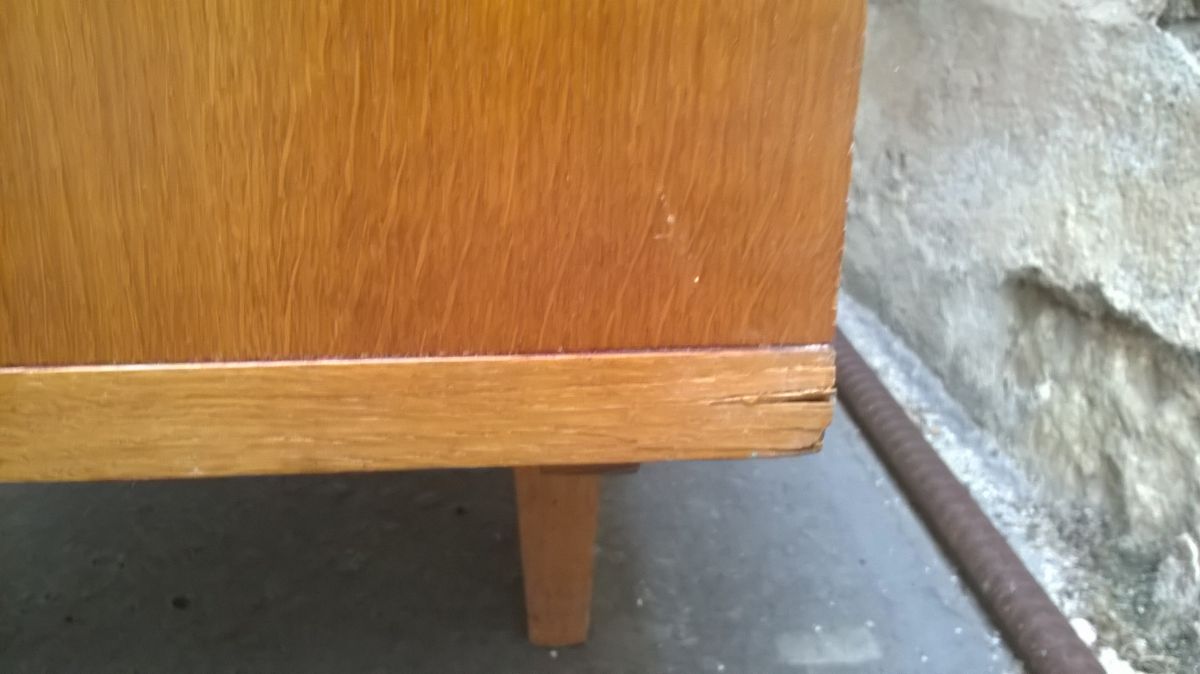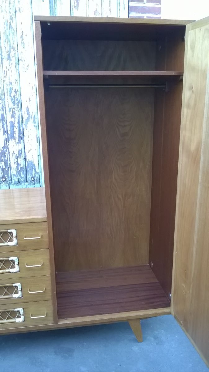 superbe armoire commode asymétrique en chêne et rotin année 60.