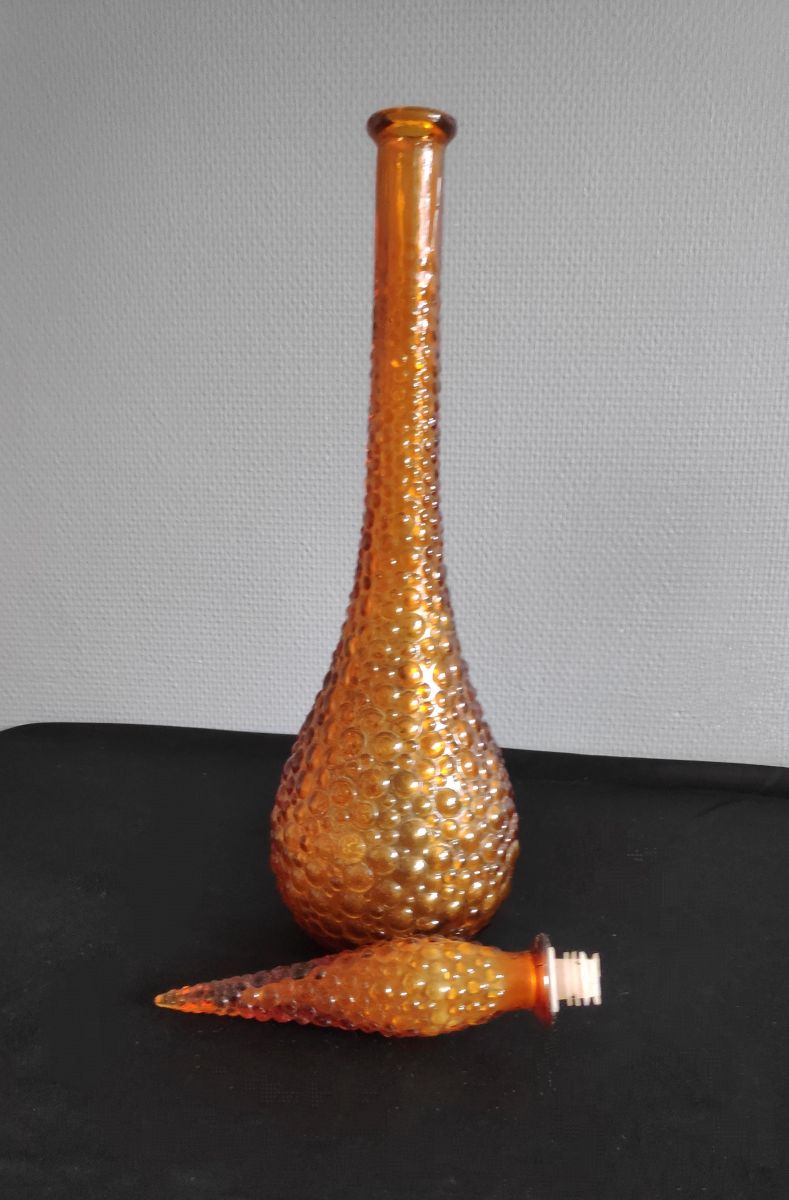 carafe italienne empoli ambrée gouttes d'eau avec bouchon flamme