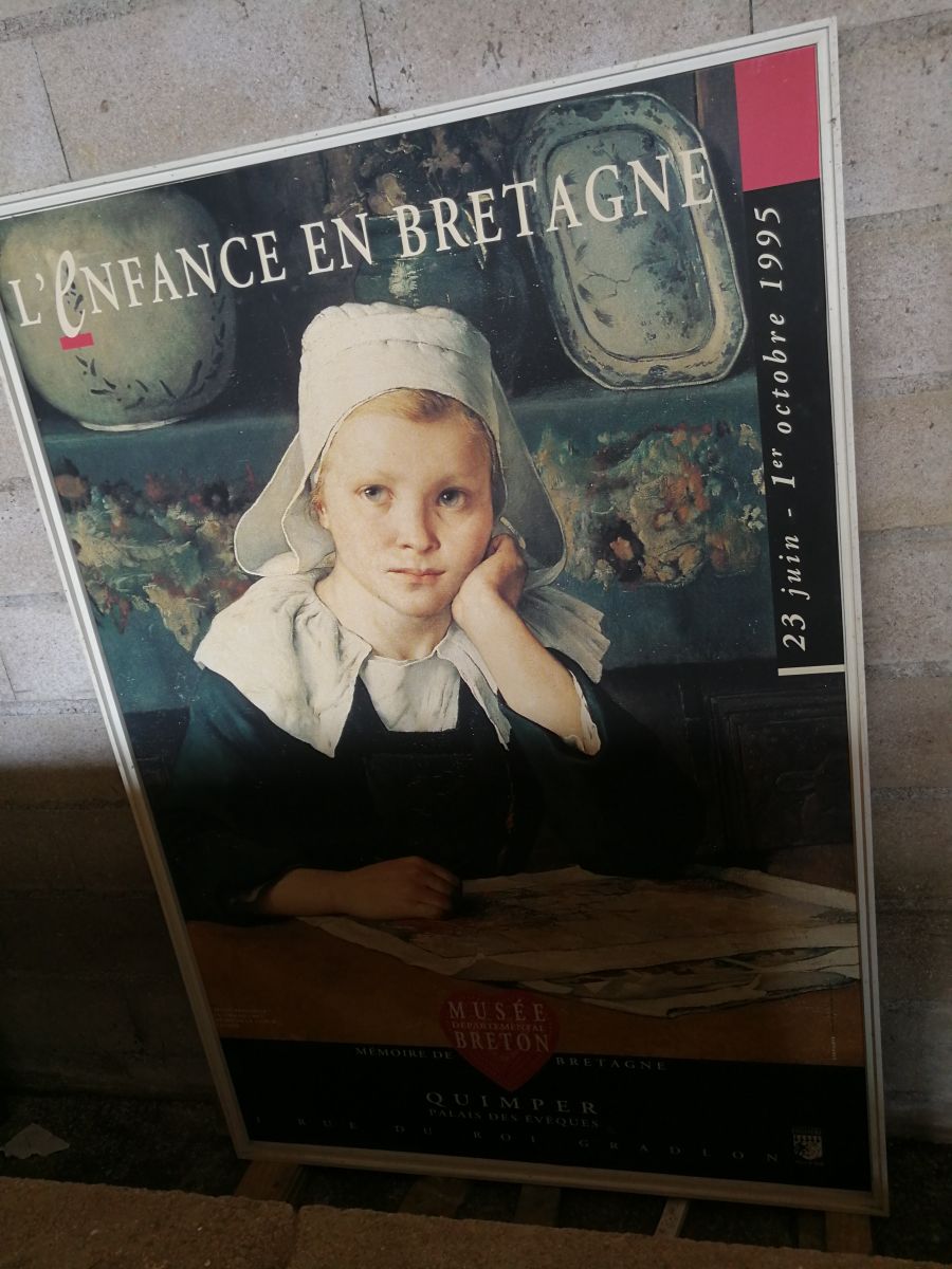 Grand panneau publicitaire en bois '' L'ENFANCE EN BRETAGNE'' MUSÉE départemental BRETON.