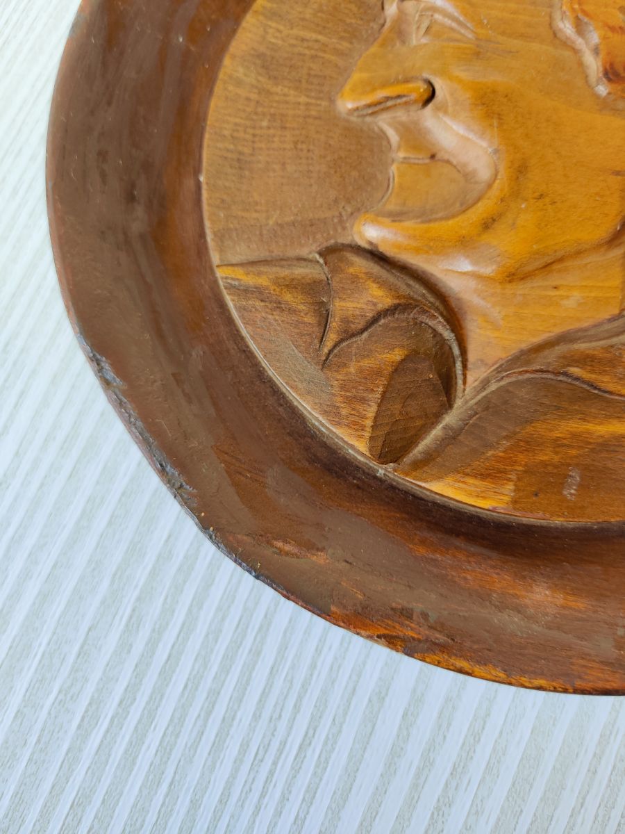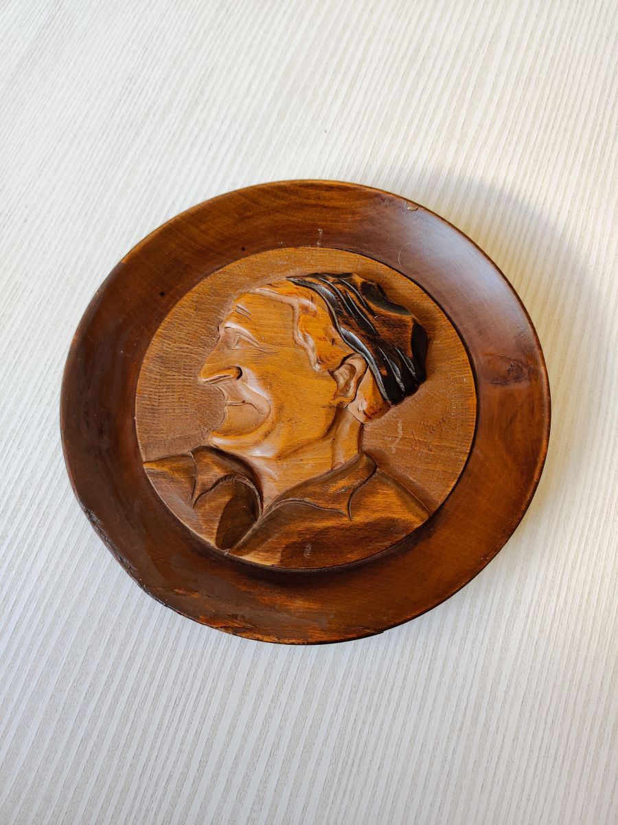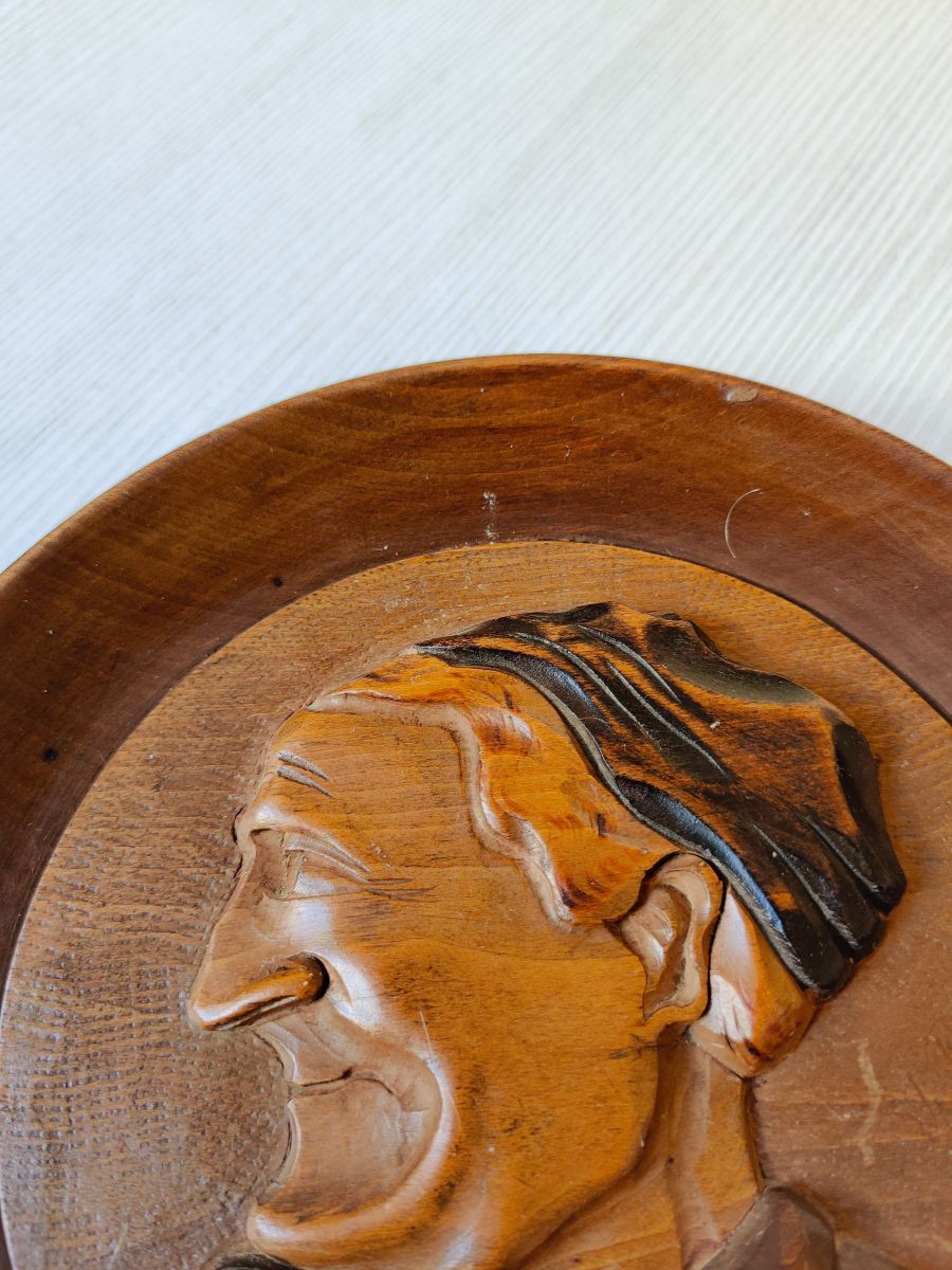 ▪️Assiette décorative en bois. Représente un vieil homme.