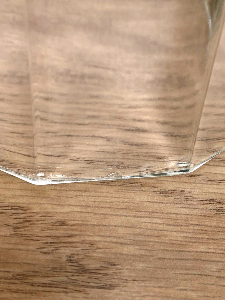 Cloche en verre art déco. Légères abrasions en bas de cloche (Cf. Photos). Diamètre 15,5 cm, hauteur 12 cm. V579