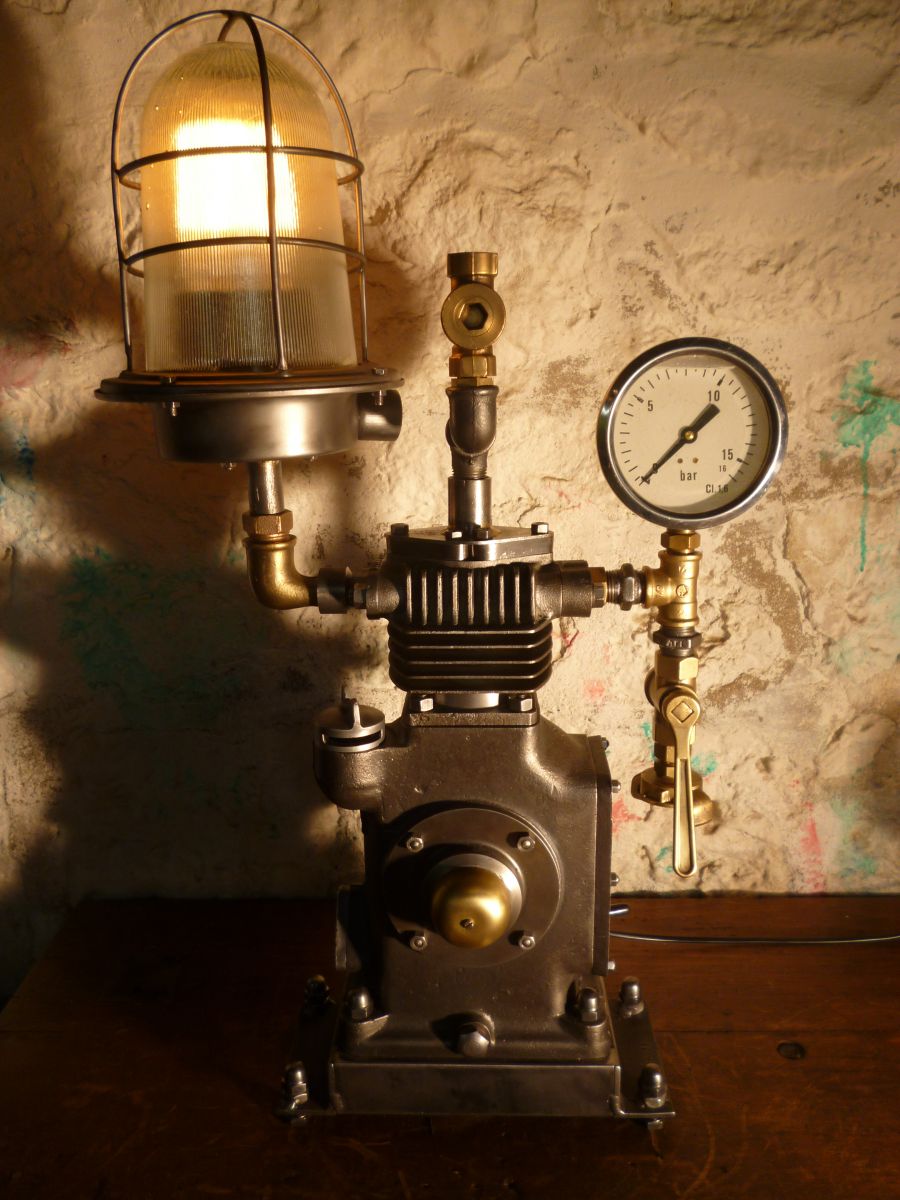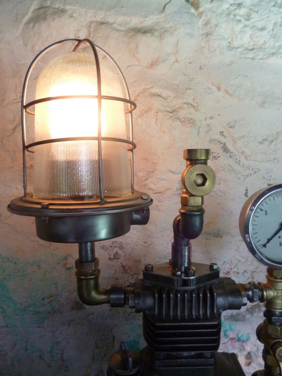 LAMPE INDUSTRIELLE - STEAMPUNK - COMPRESSEUR -