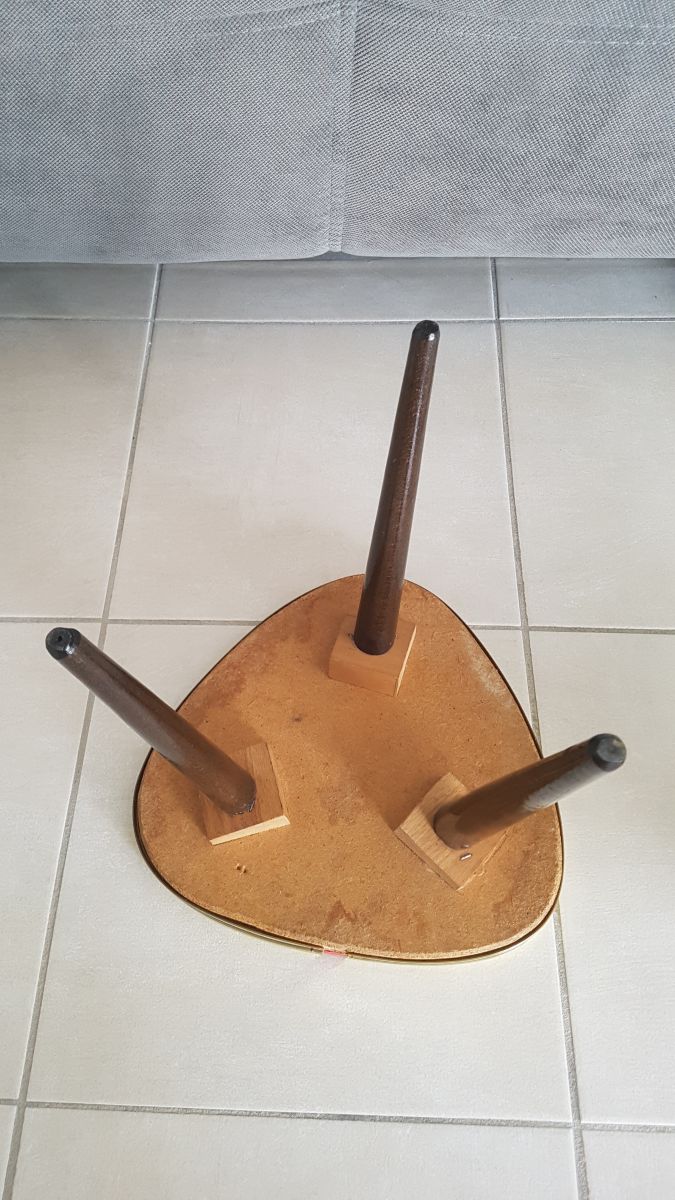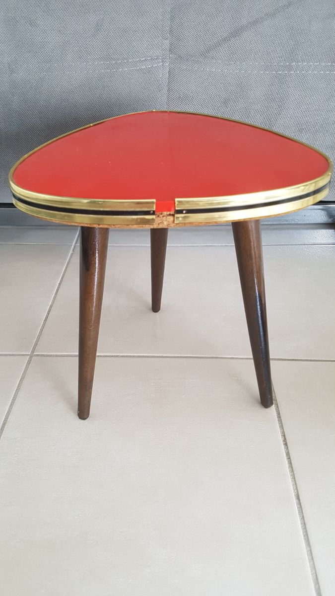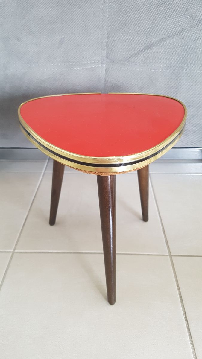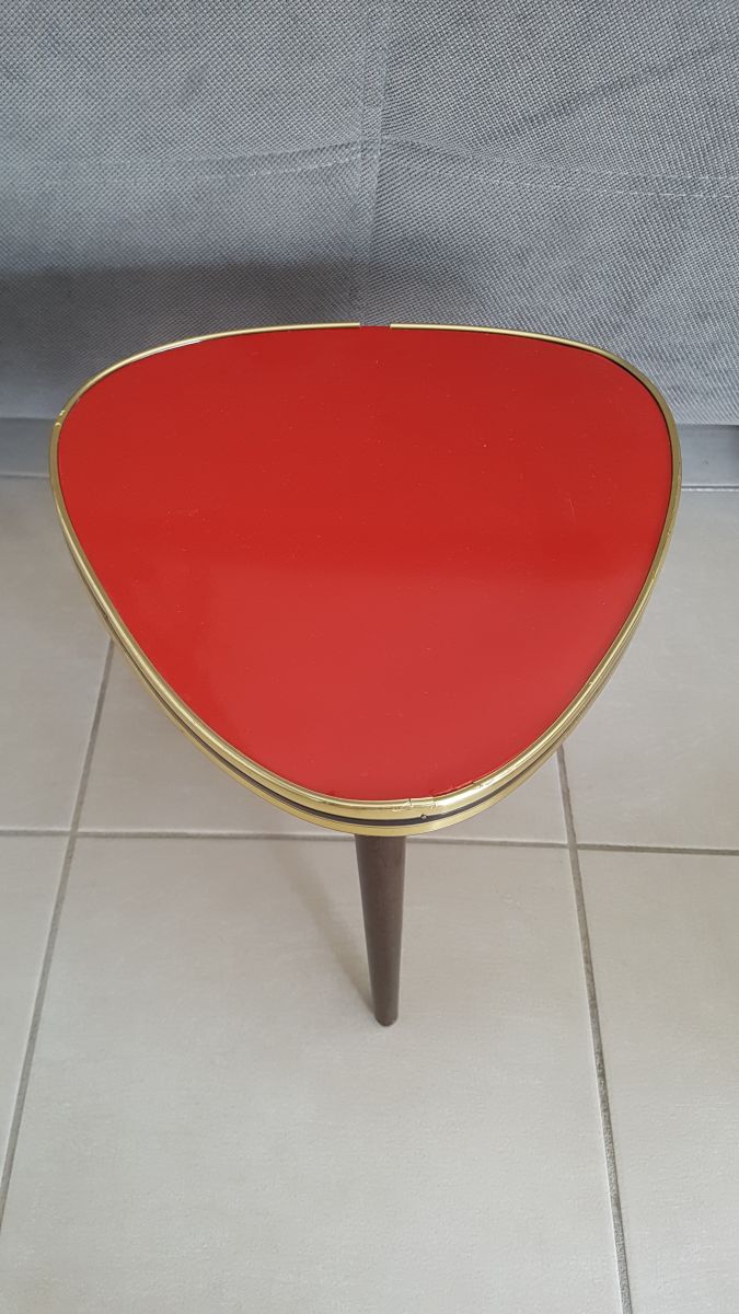 Porte plante,guéridon vintage triangulaire rouge,tripode