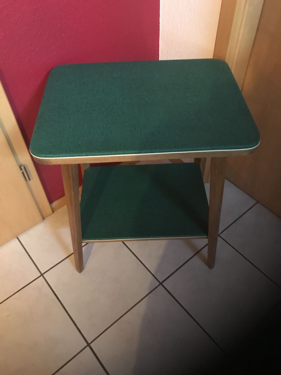 Superbe petite table de salon Vintage, années 60's. Couleur verte et armature bois. Démontable. Dimensions du plateau supérieur