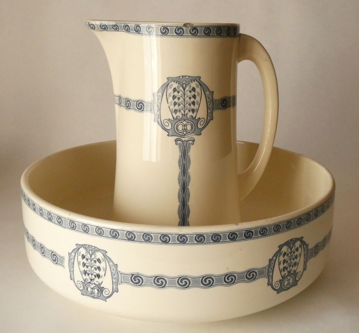 Début XXème Bel ensemble de toilette en faïence de St Amand et Hamage.