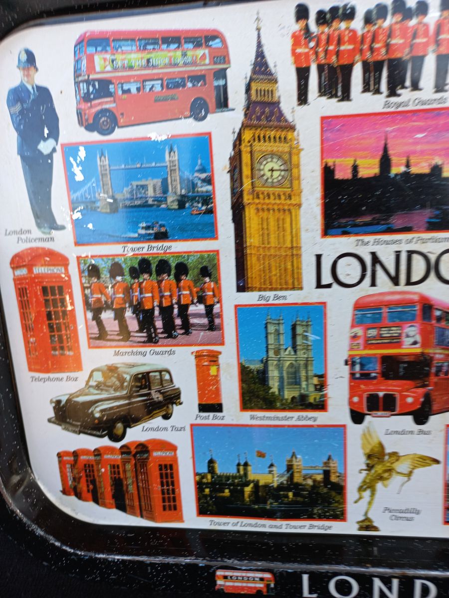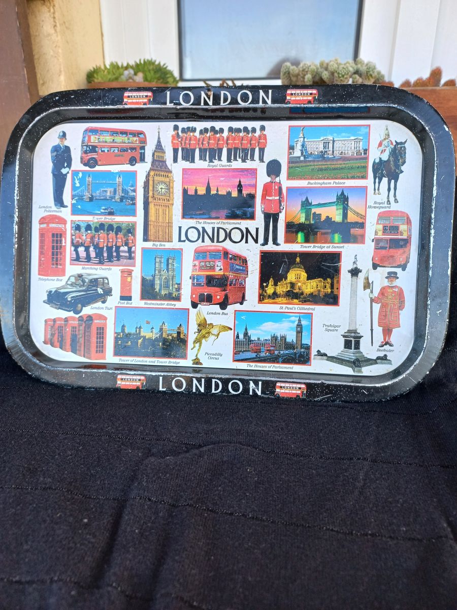 Un joli plateau Vintage en métal, décor "Vues de London".