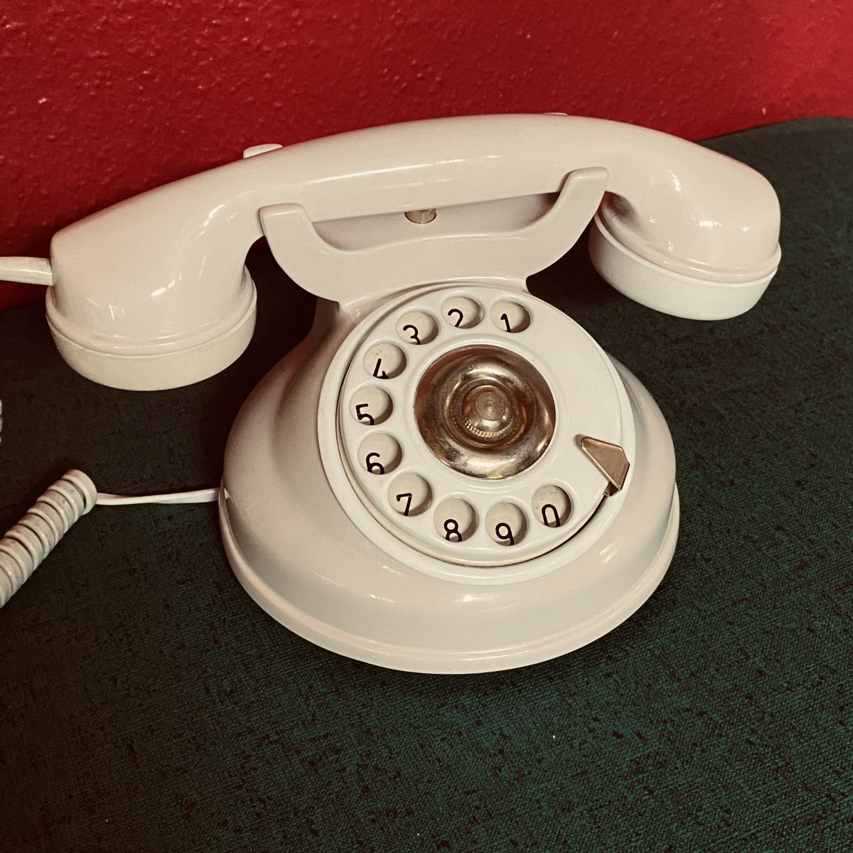 Nous vendons ce téléphone Vintage des années 50's de la société italienne SITEL. Ce téléphone est extrêmement rare, voire introuvable. Certains téléphones lui ressemblent mais leur base est carré alors que sur celui-ci la base est ronde. Il est en parfait état, de couleur beige/rosé. Il est en bakelite. Fourni avec la prise téléphone. Objet collector. Envoi rapide et soigné.