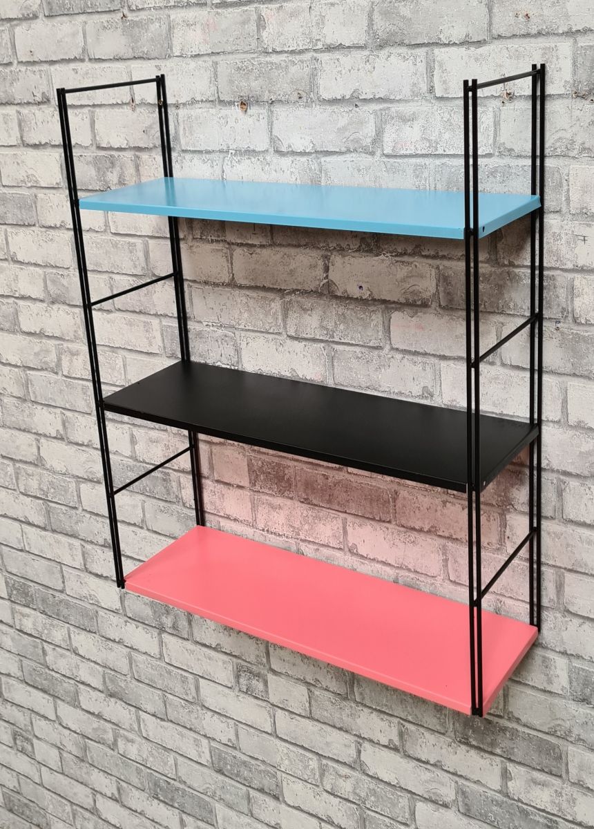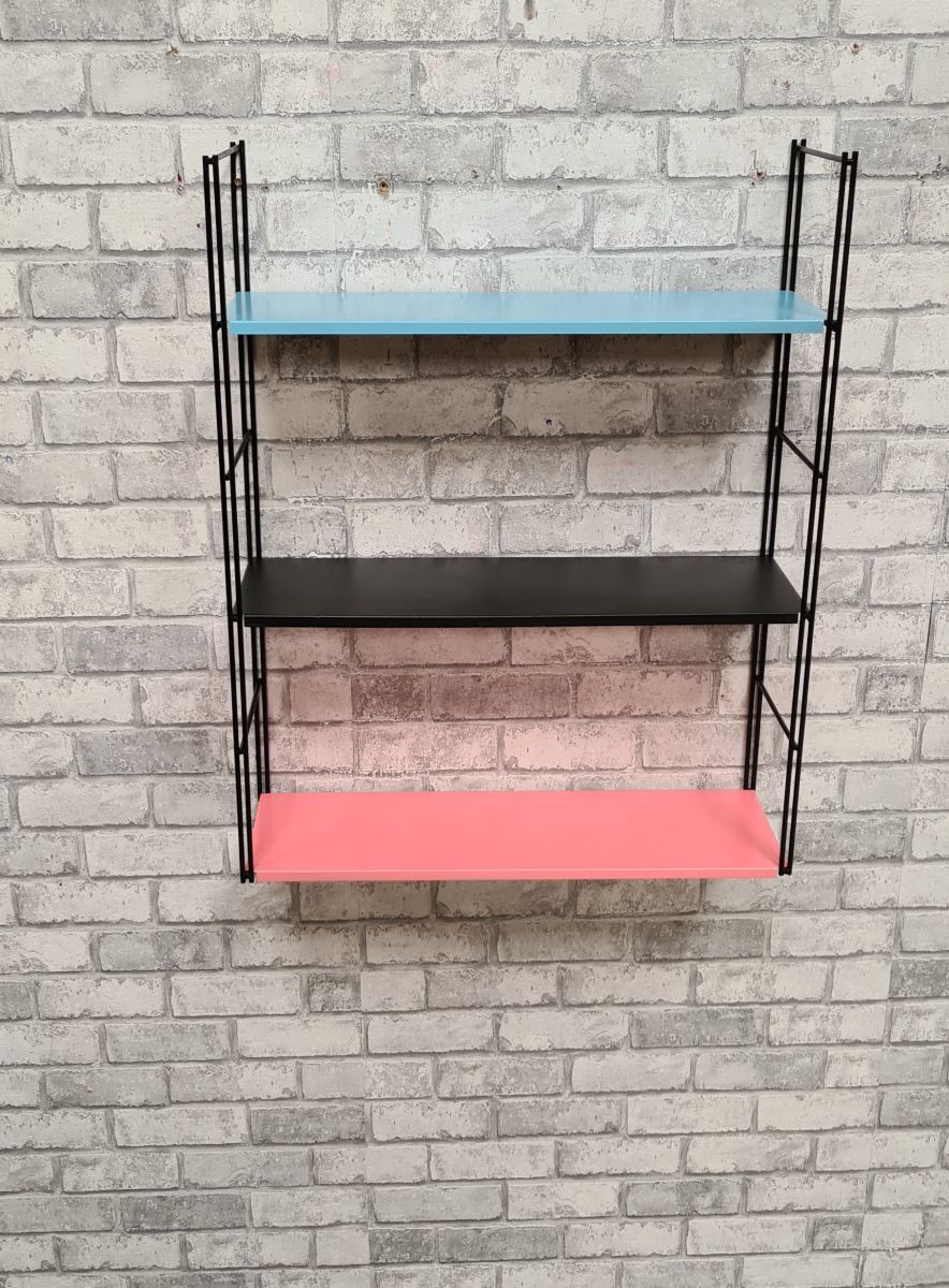 etagere acier string vintage 1960 bleu rose noir , 47x60x18