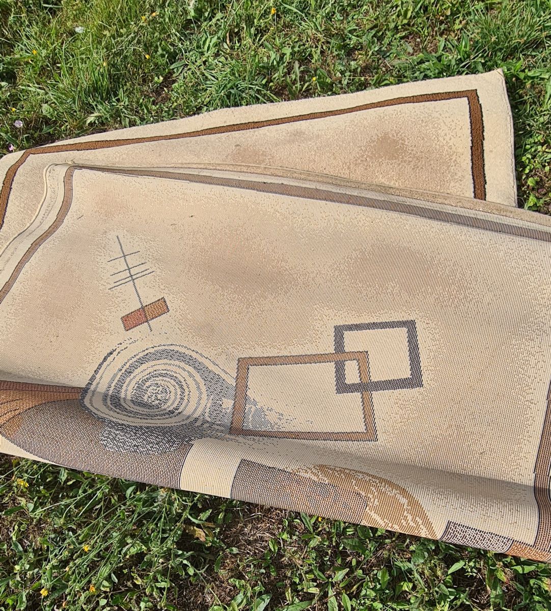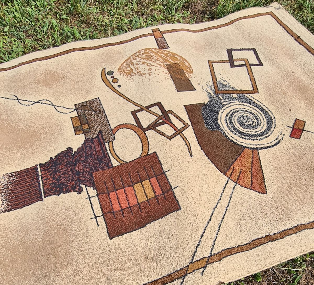 TAPIS MODERNISTE DESIGN ABSTRAIT 132x185 creme et marron