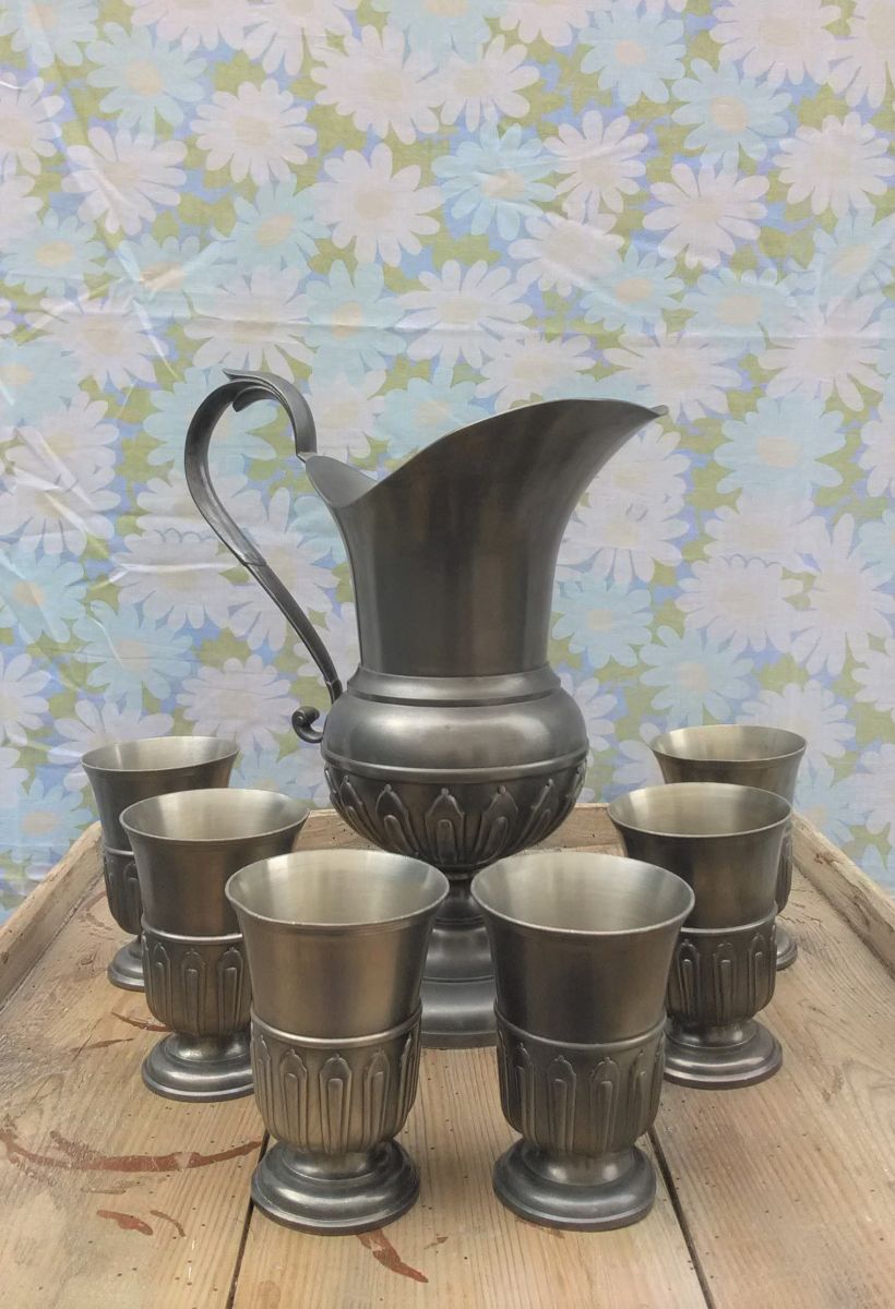 Pichet et gobelets à vin - Etains du manoir (France)