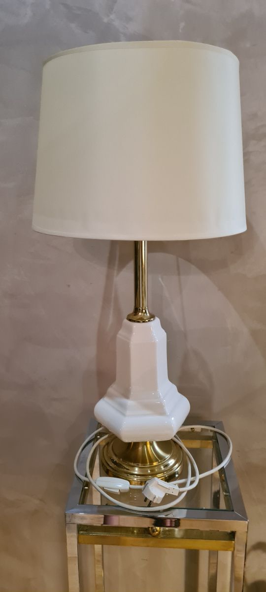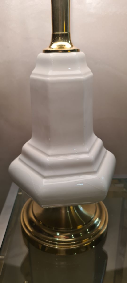 lampe en porcelaine craquelé et pied doré style deluxe 1970