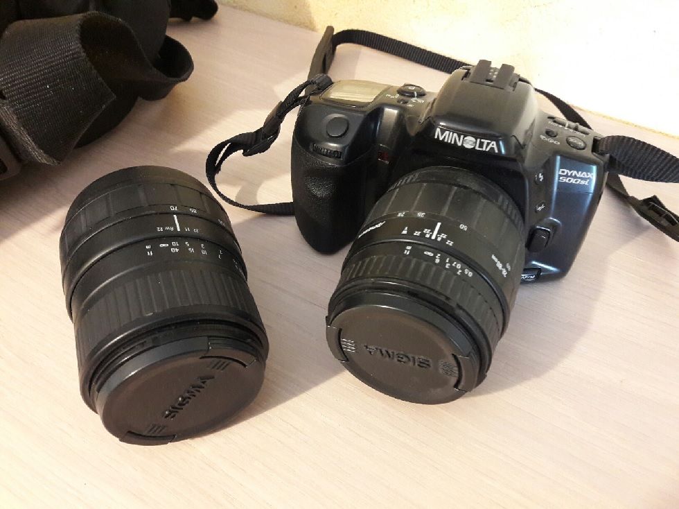 Appareil photo Minolta DYNAX 500si. Avec deux objectifs : 28-80mm et 70-210mm. Plus une sacoche.