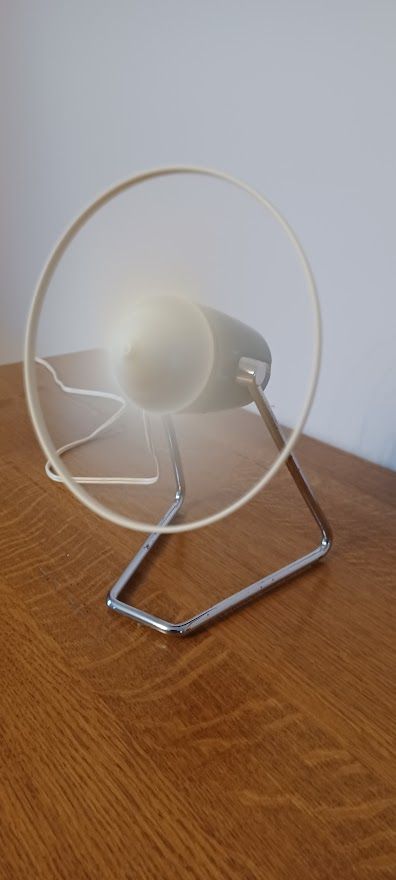 Célèbre ventilateur vintage et design de marque CALOR. Super look aviateur inspiré par les moteurs des DC7 et des avions de ligne des années 50. Ancien petit ventilateur de table ou de bureau à poser. Débit d’air très puissant et parfaitement opérationnel.