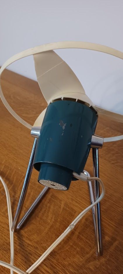 Quelques petits défauts d'aspect : peinture un peu écaillée, 2 pales fissurées qui n'empêche pas son fonctionnement et ne gêne pas visuellement. Testé, il fonctionne parfaitement. Entièrement nettoyé, prêt à l'usage.