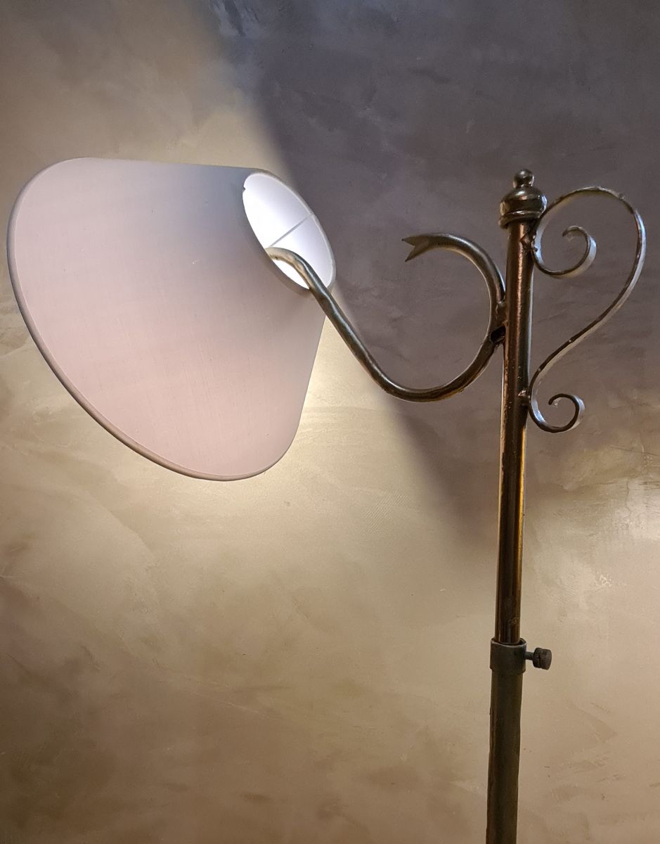 lampadaire fer martelé 1960 peint or patiné ,réglable 180