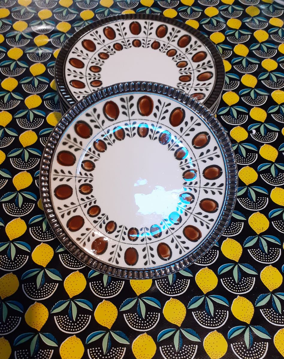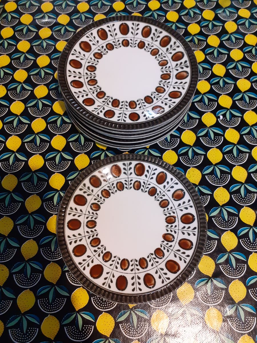 Lot de 9 assiettes à dessert en très bon état. Série Noix, date anniversaire 1966.
