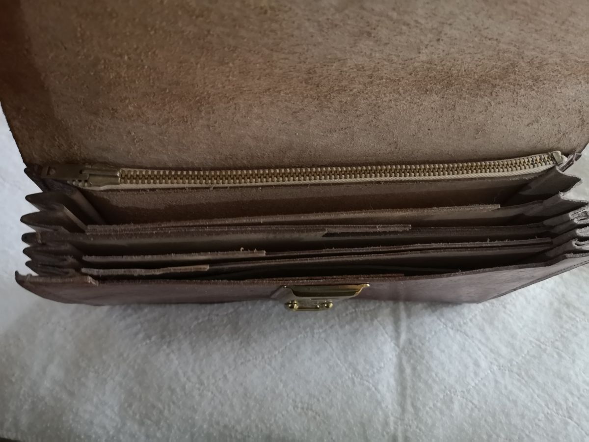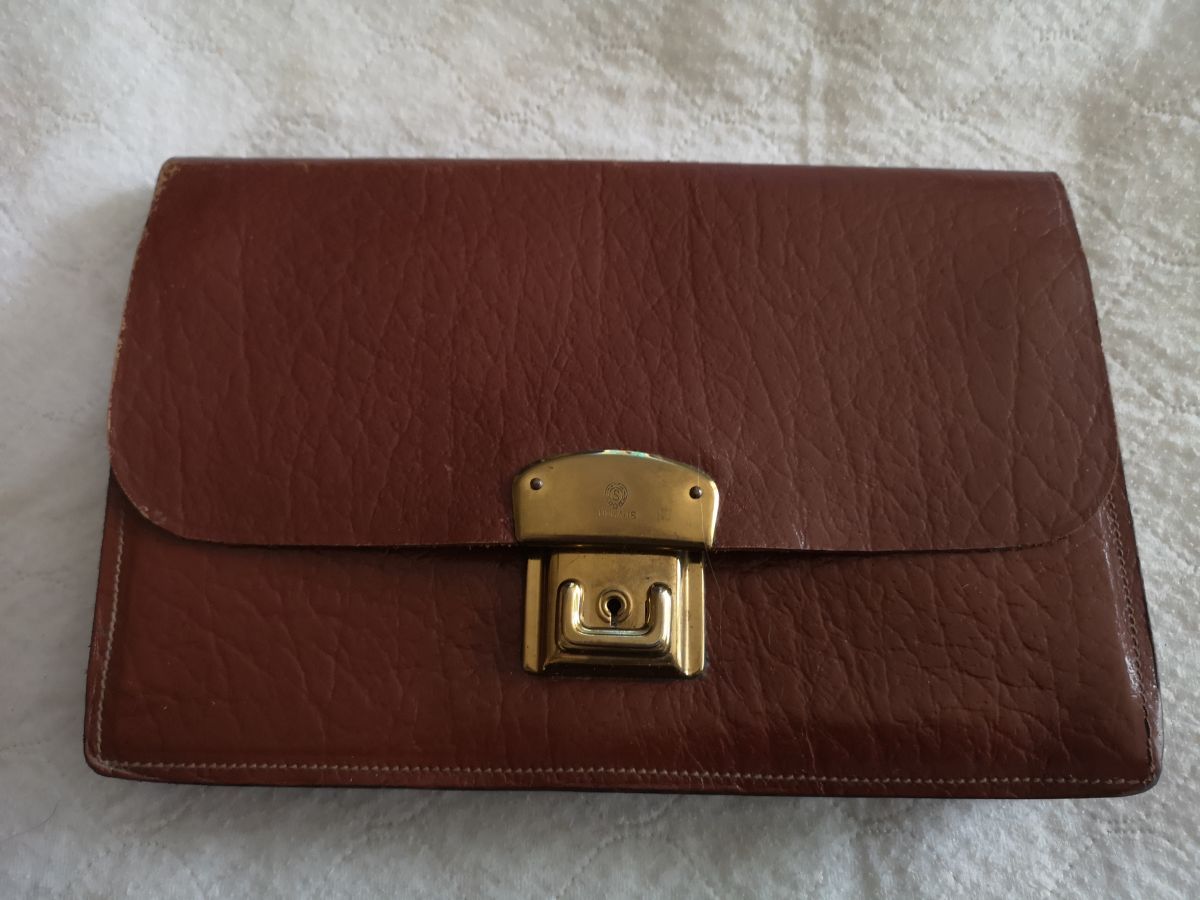 SACOCHE HOMME CUIR de marque SUDHAUS 9 COMPARTIMENTS dont 1 avec fermeture éclair longueur sacoche 27 cm hauteur 18 cm fermeture luxe en laiton manque petite clef mais ferme et ouvre par tirette en très bon état prix très bradé