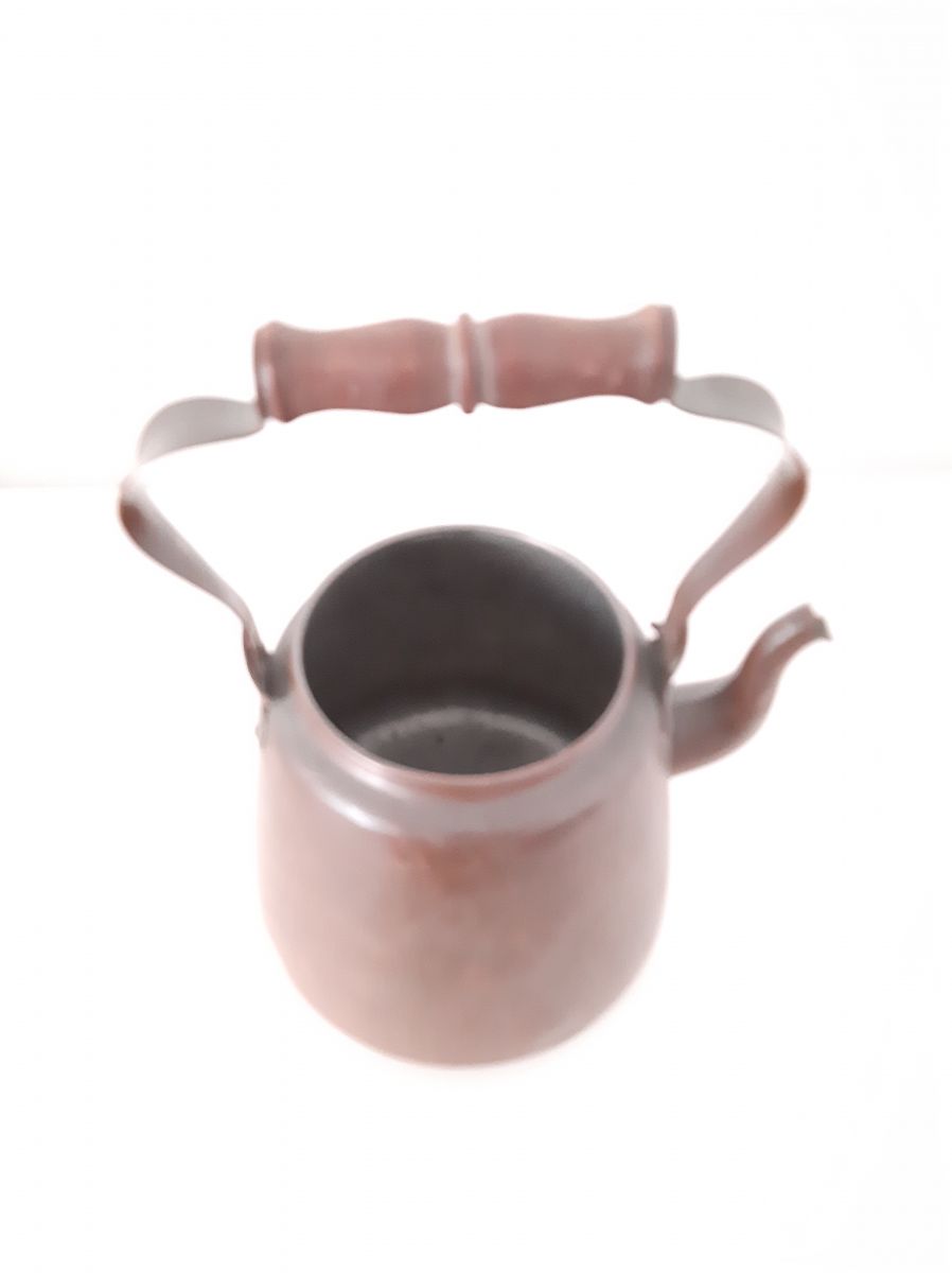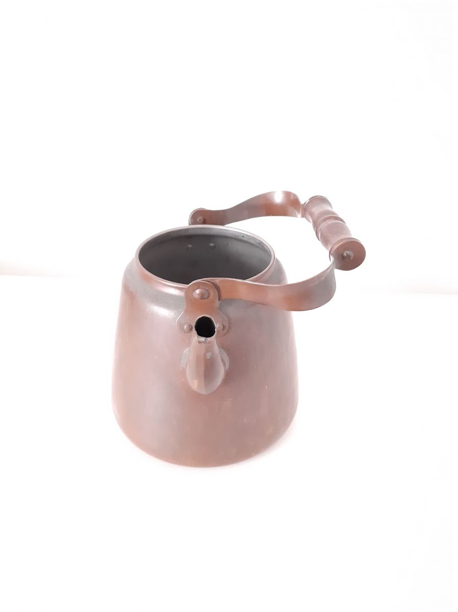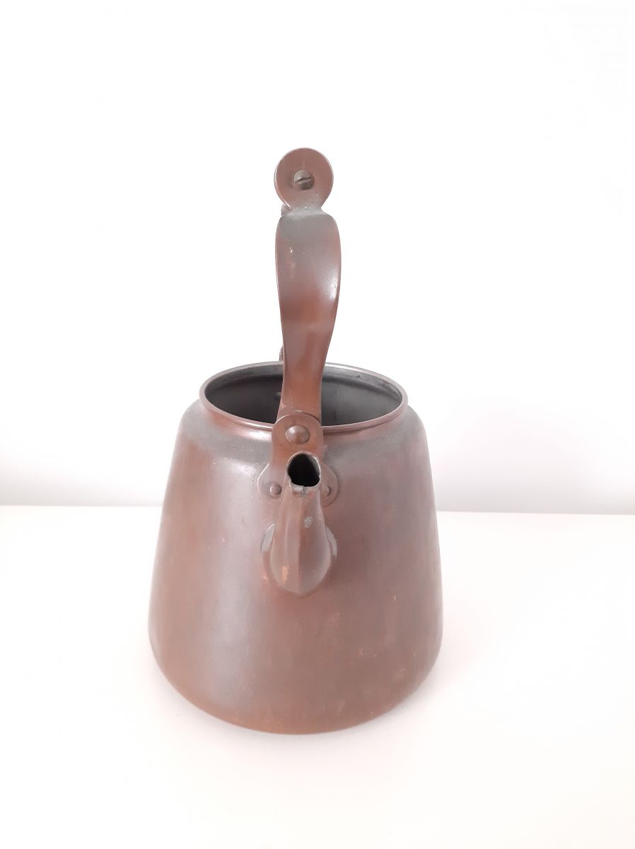 Bouilloire en métal fabriqué au portugal. Vendu sans couvercle. La bouilloire théière n’a pas été poli pendant un certain temps; elle a une finition vieillie, elle peut être poli de nouveau pour retrouver son aspect initial. La bouilloire / théière contient des rayures égratignures, usures mineures en raison de l'ancienneté de l'article. Dimensions: Hauteur avec la hanse: 25cm. Longueur: 19cm. Largueur: 15cm.