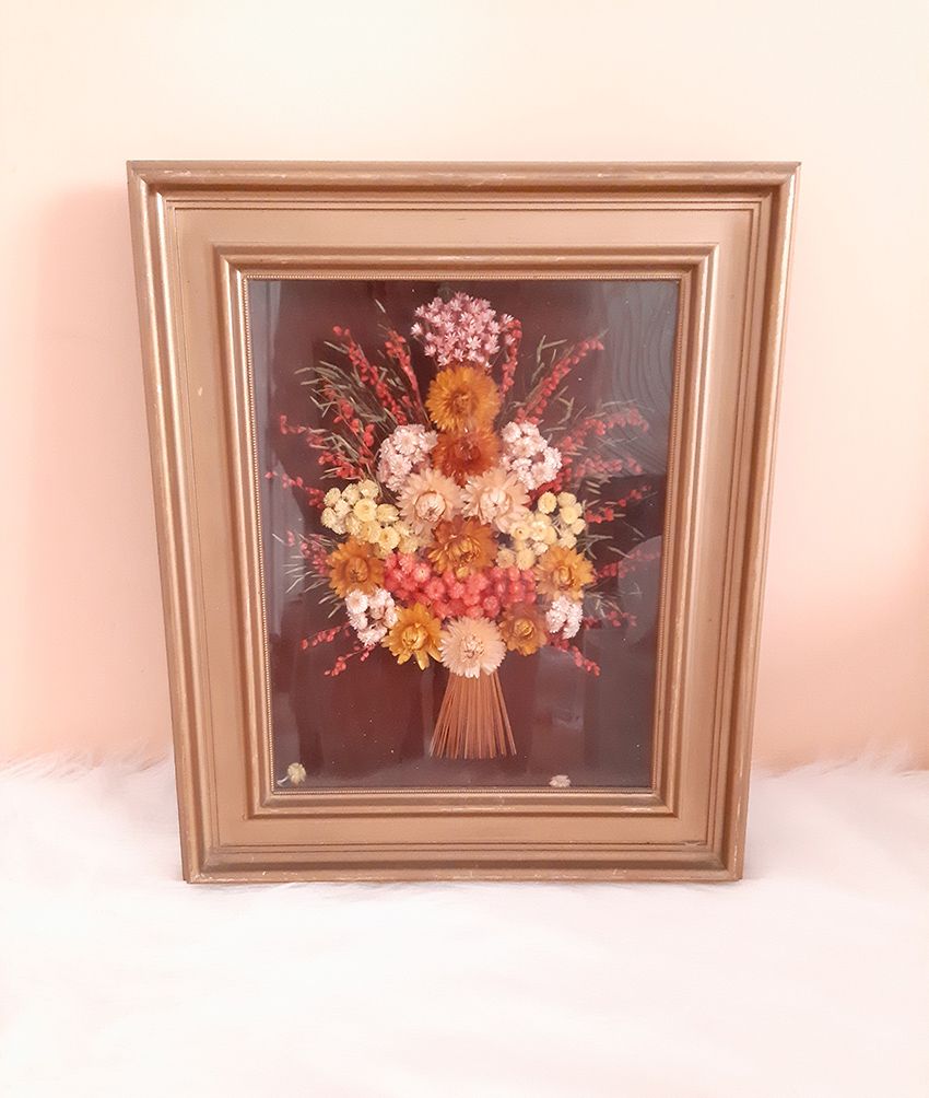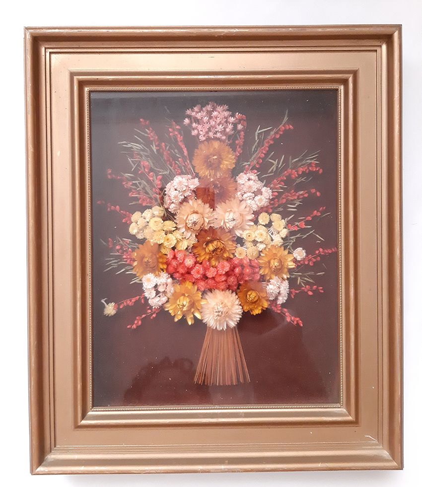 Ancien Tableau mural vintage, fleurs séchées année 1960 1970