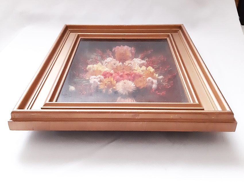 Ancien Tableau mural 3D, fleurs séchées forme rectangulaire des années 60/70.