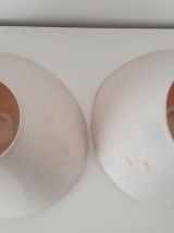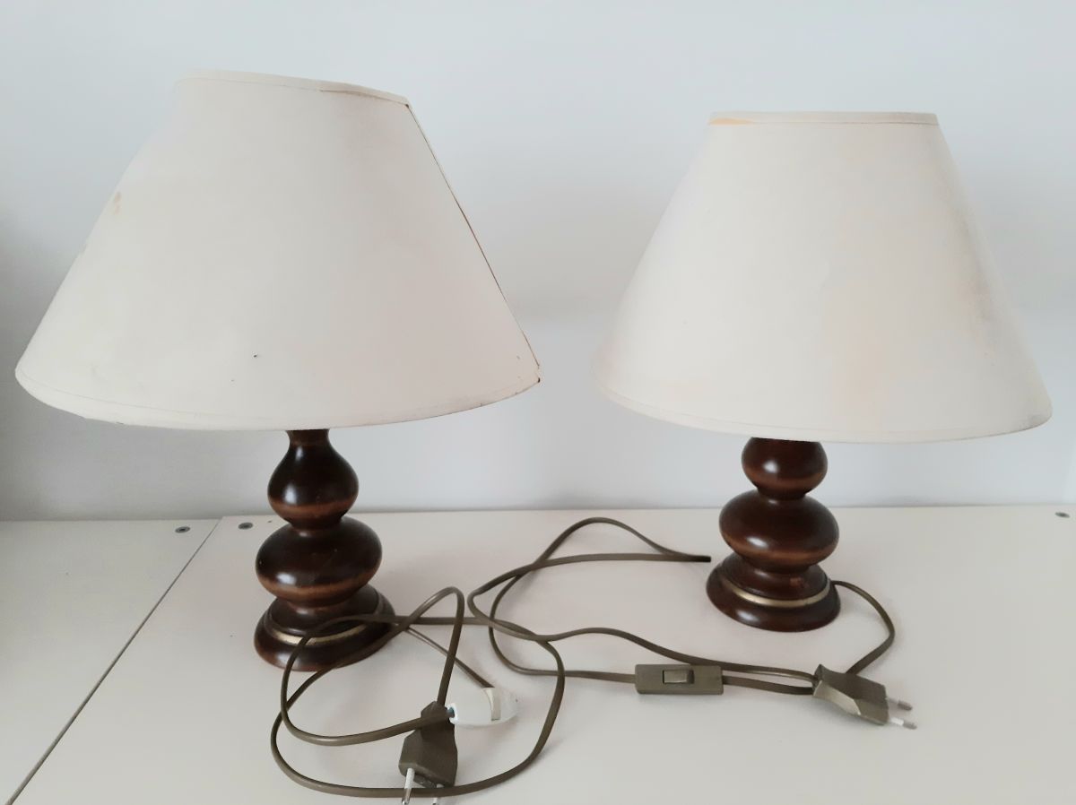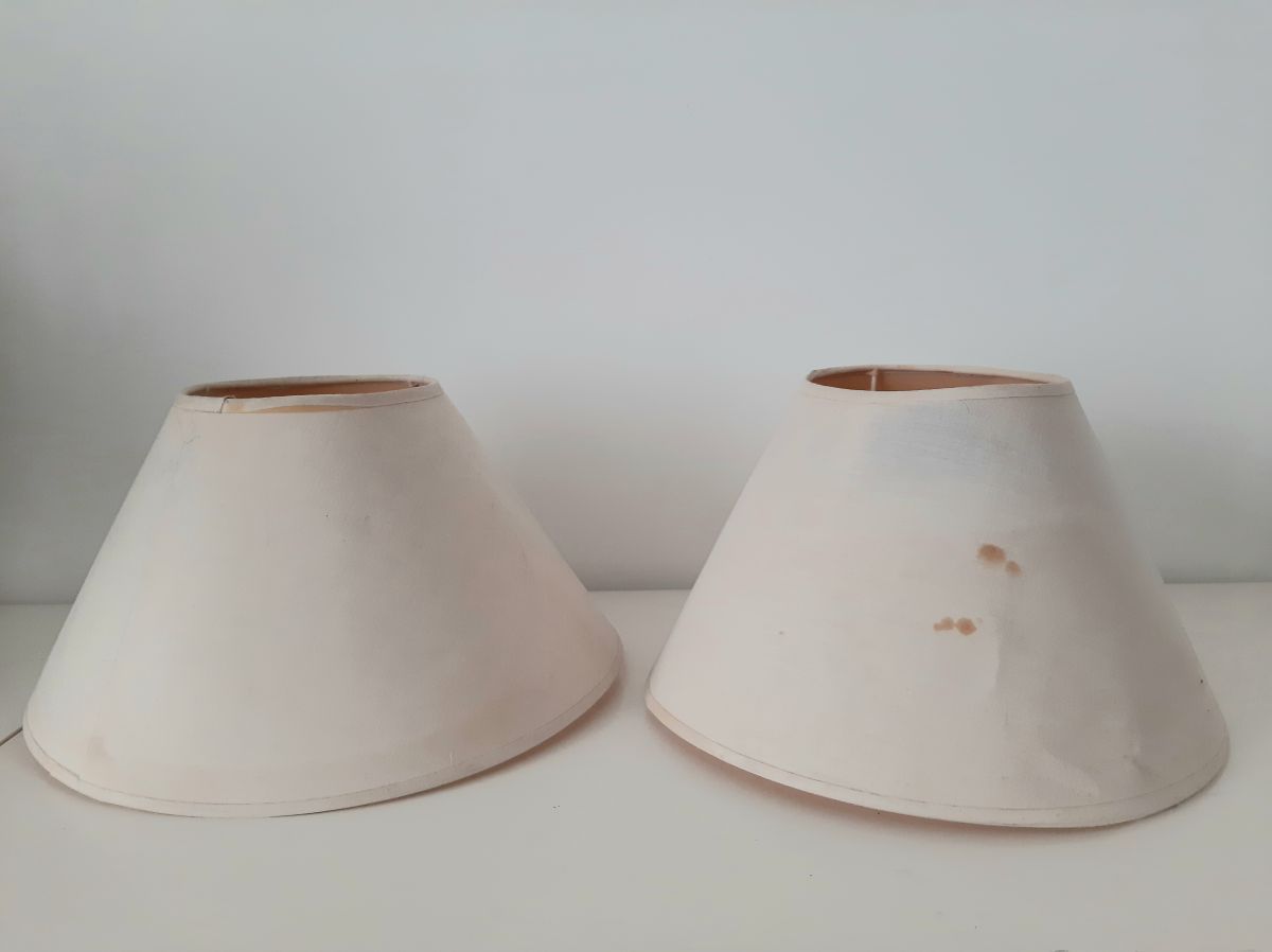 Les 2 abats jours sont à rénover, le cerclage en fer s'est déformé, les tissus d'abat jours comporte des tâches