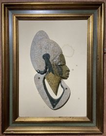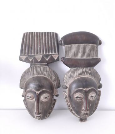 Masques couple africain baoulé,masque portrait Ndoma Mblo