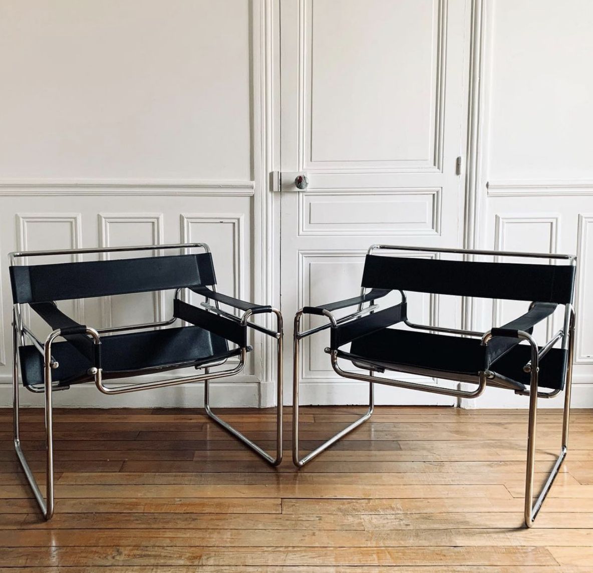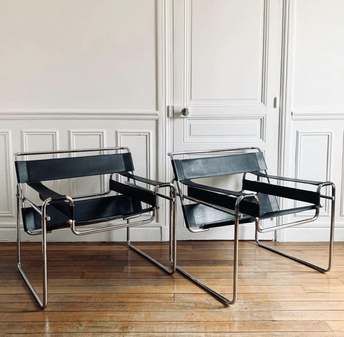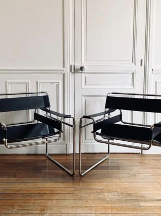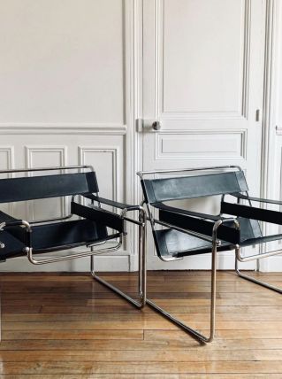 Marcel Breuer - Chaise Wassily B3 en cuir noir