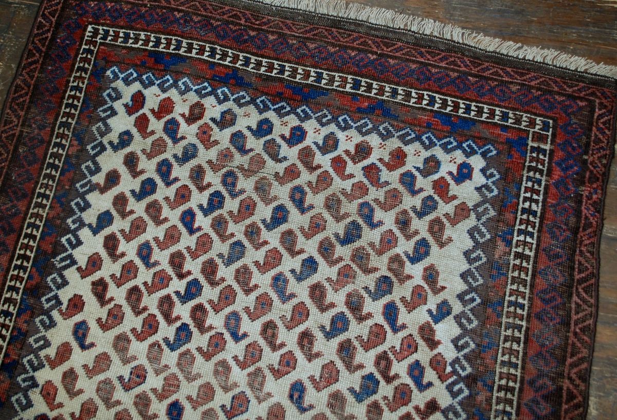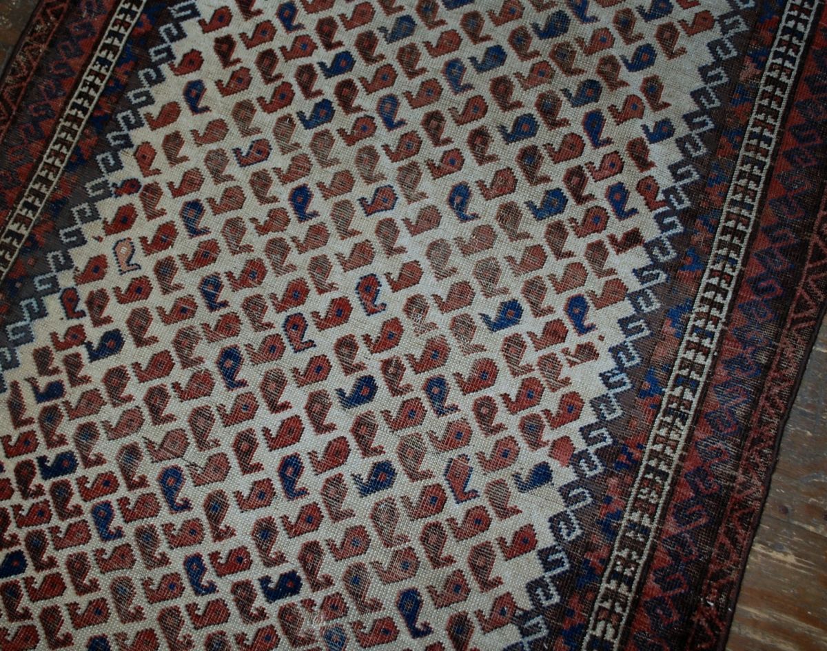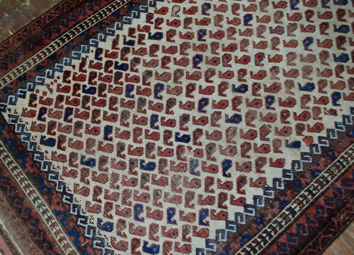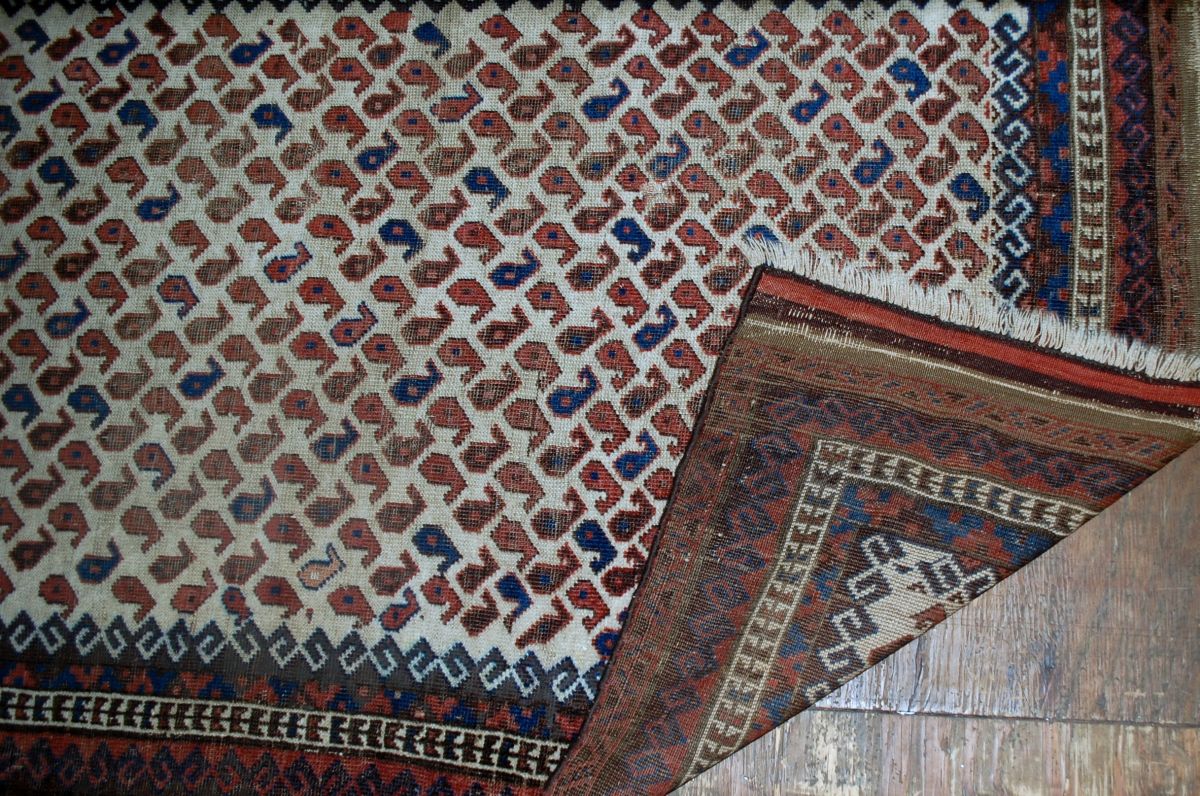 Antique hand made Afghan Baluch rug in original condition, it has some signs of age. The rug is from the end of 19th century.