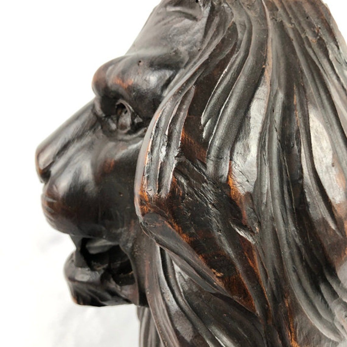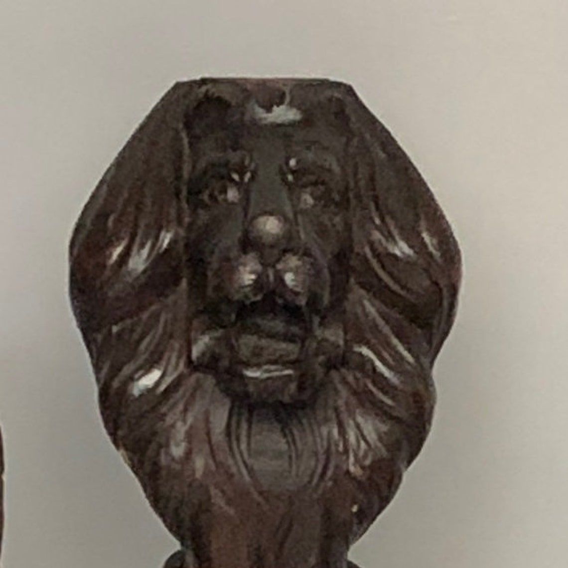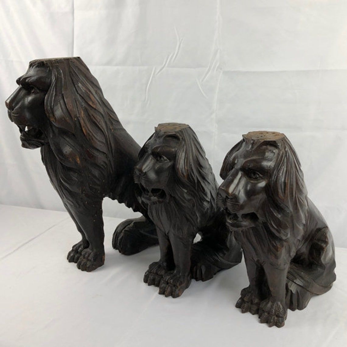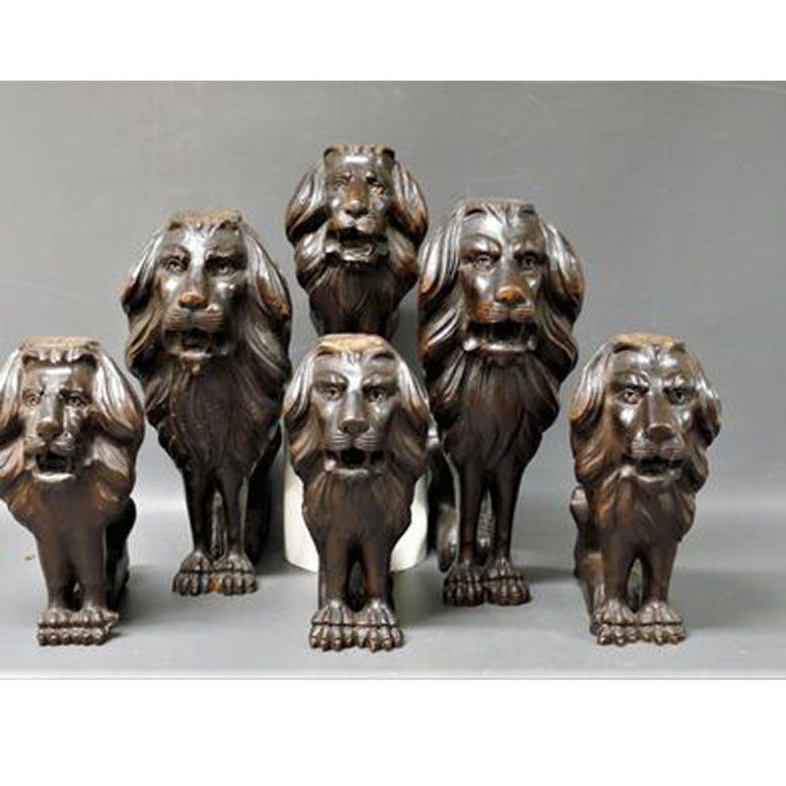 Magistral groupe de 6 lions centenaires en bois de noyer sculptés à la main.