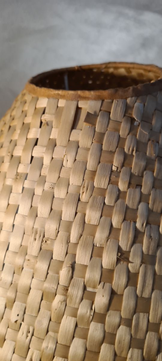 lampe bois tourné avec veinage marquer et abat jour rotin petit defaut voir photos belle pour son age1950 a 70 ,50 x31 cm