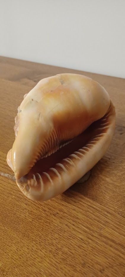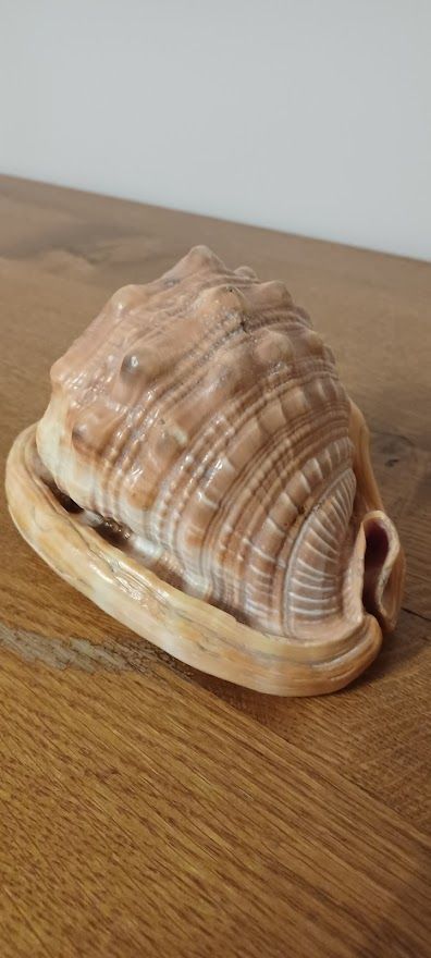 Appelé aussi casque gueule de taureau ou encore Cassis Rufa. C'est une espèce protègée, on n'en trouve donc peu sur le marché. Coquillage de collection mais peu servir aussi de décoration dans une salle de bain.